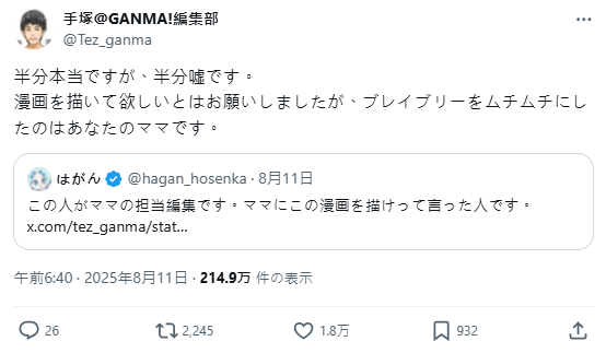 兩人你來我往互相甩鍋,網友笑翻,形容這是第一次看到漫畫家跟編輯公然在網路上互推鍋責。