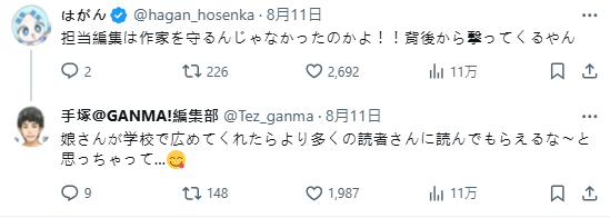 近期日本 X 上,一位筆名「はがん」的漫畫家在 X 上發文指出,自己一直對孩子們隱瞞的漫畫創作身分,現在卻可能被長女識破,掀起網友熱烈討論與創意互動。