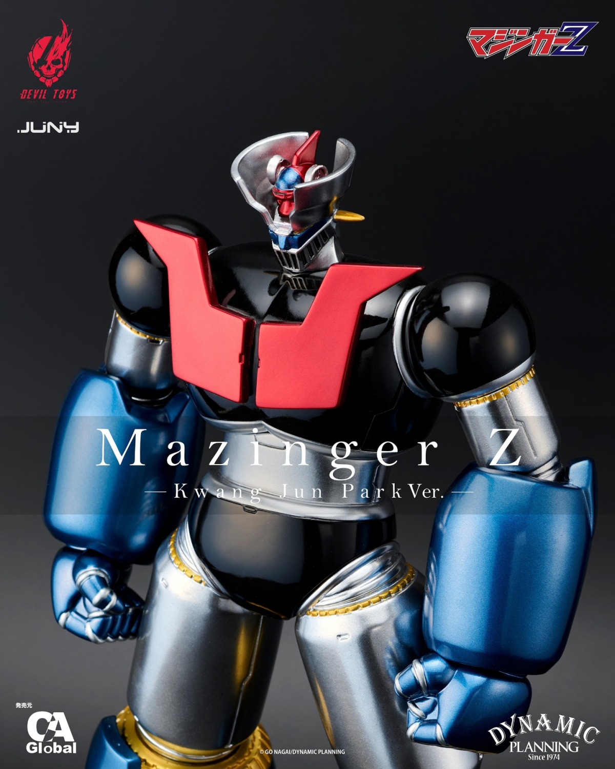 本次由 Kwang Jun Park 操刀設計、並由 Devil Toys 以軟膠材質立體化的無敵鐵金剛高約 33.5 公分,在保有鋼鐵之城經典洗練線條美的同時注入 Kwang Jun Park 自身的獨特風格,整體造型可說是相當超級!除了魄力驚人的頭身比例呈現外,雙臂、雙腿還以金色塗裝點綴。雖是軟膠玩具但散發出的金屬重量感與光澤十分迷人,四肢也配置了可動機構,能擺出極具氣勢的魔神降臨之姿。