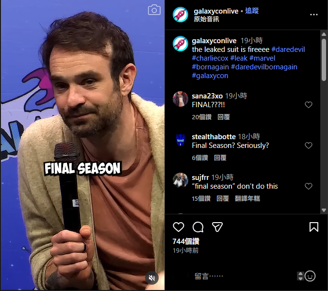 漫威影集《夜魔俠:重生》(Daredevil: Born Again)第二季拍攝期間,主演查理·考克斯(Charlie Cox)在美國 Galaxy Con 活動上透露,本季將出現一套「漫畫中不存在」的全新夜魔俠戰服,並意外將本季稱為「最終章」,引發粉絲熱議。