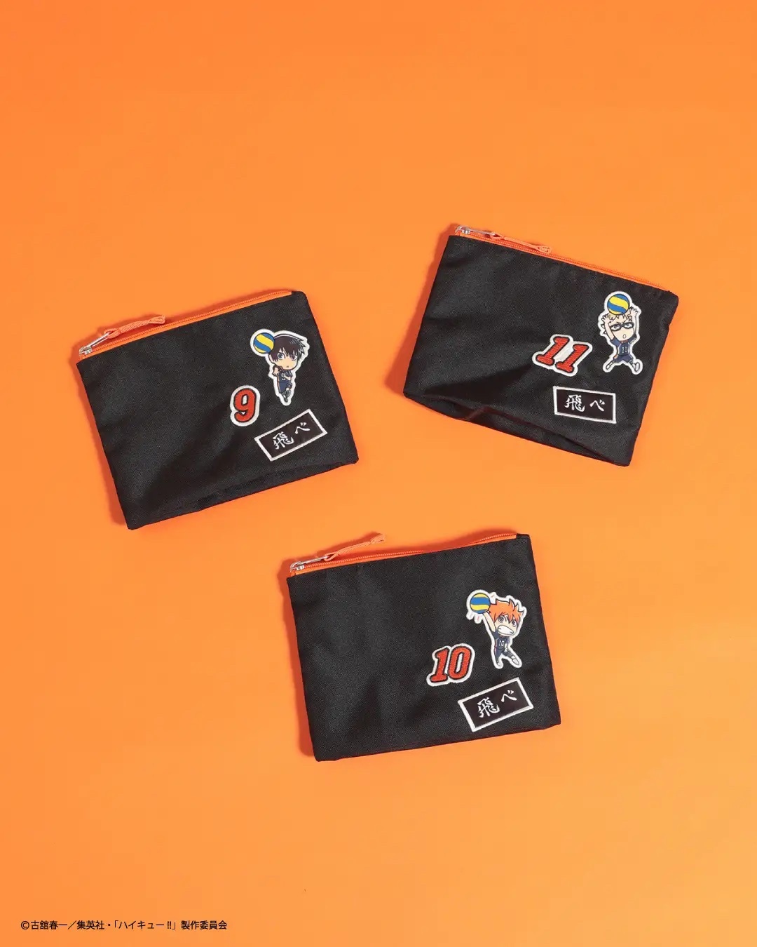 ■ 刺繡化妝包:結合角色們打排球的插圖與背號,分別有烏野款(日向、影山、月島)與音駒款(研磨、黑尾)。