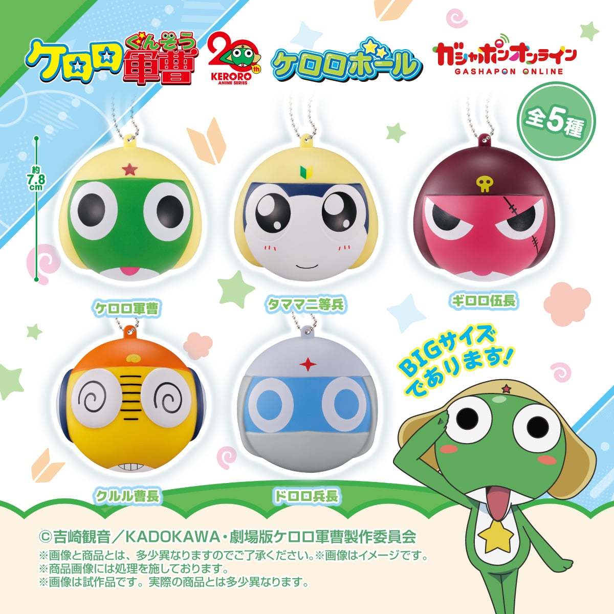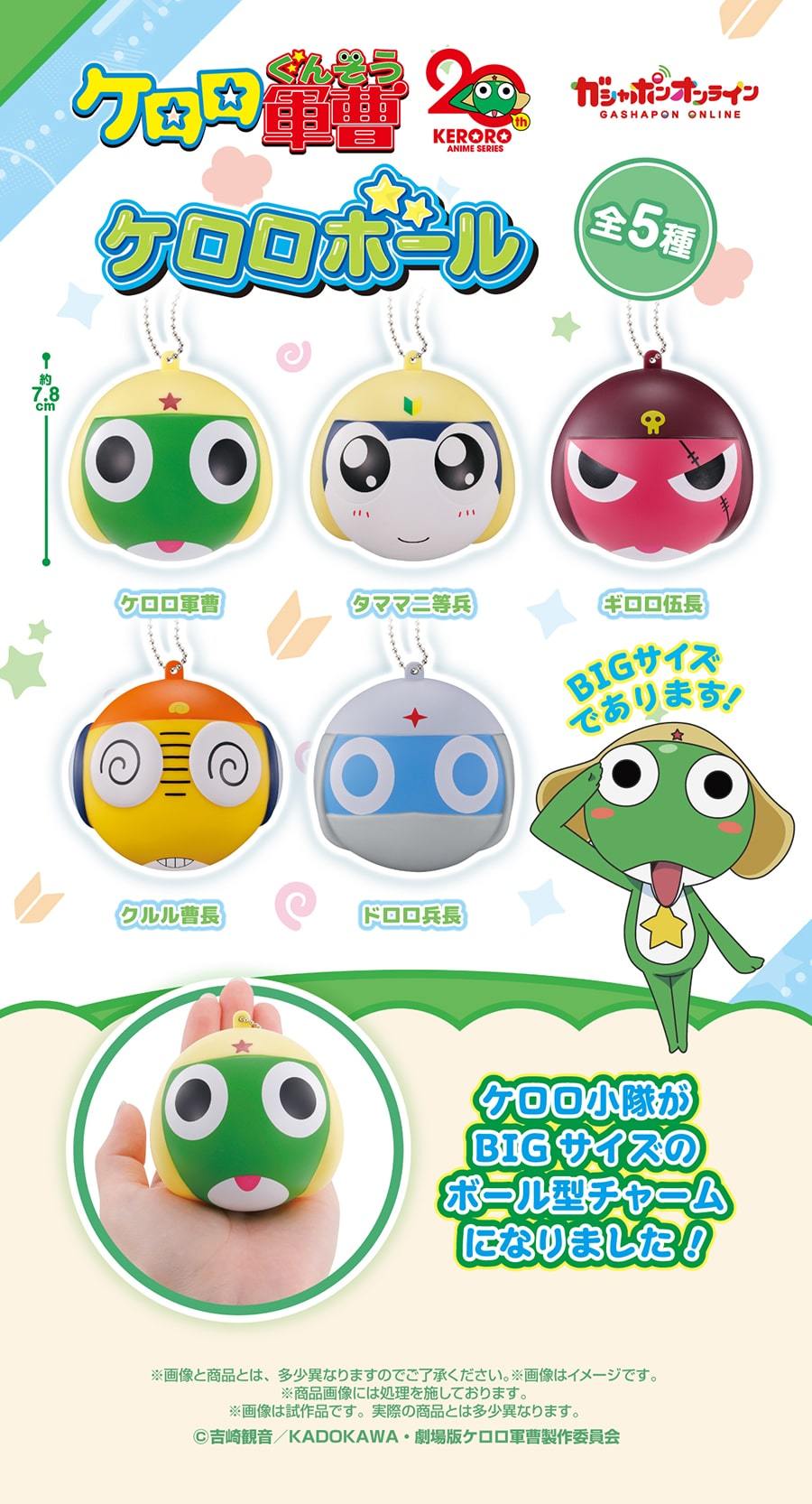 日本 BANDAI 玩具公司轉蛋事業部 GASHAPON 近日發表了出自日本漫畫家「吉崎觀音」創作之《Keroro軍曹》的最新商品「Keroro軍曹 Keroro球」(ケロロ軍曹 ケロロボール)轉蛋!現正於 GASHAPON ONLINE 展開發售,預計 2025 年 10 月開始發貨,建議售價為每轉 400 日幣,一共有五種款式可以收集。