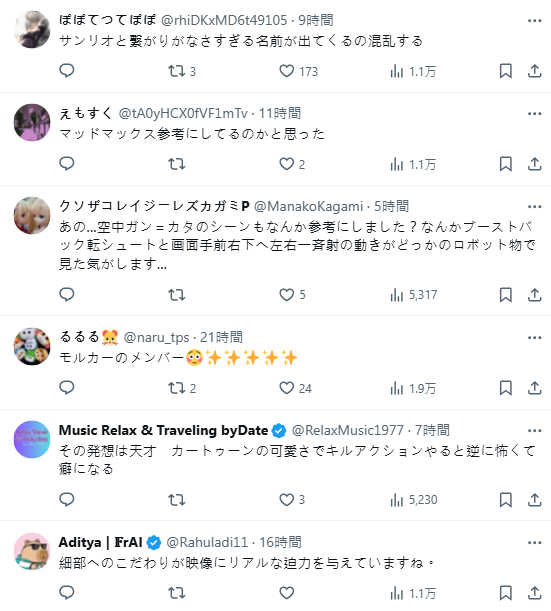 導演見里朝希轉發了該片段,並揭露幕後祕辛:「彼安諾的戰鬥場面,是參考《捍衛任務》(John Wick)和韓國電影《惡女》的摩托車場景,再由《PUI PUI 天竺鼠車車》團隊拍攝完成的。」