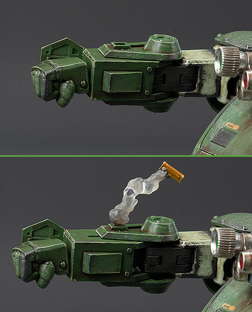 此外本體上製作出不少提升可玩性的可動機構,包含頭部外罩可展開、三連旋轉鏡頭可旋轉再現各模式,胸部駕駛艙蓋與腹部維修艙門皆能展開,並製作出細節豐富的駕駛座操縱系統,能將主角齊力可的迷你人偶裝入再現駕駛狀態。武裝則包含「GAT-22 重機關槍」與三組可裝在槍上或兩側裙甲的彈匣零件。