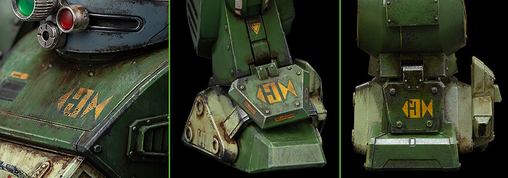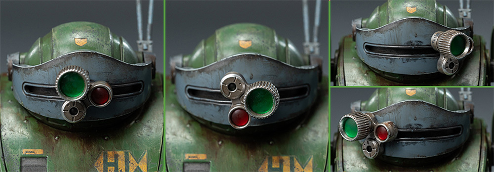「ROBO道 眼鏡鬥犬 重舊化塗裝」基於過去推出的一般版修改而來,邀請到日本知名模型師 NAOKI 重新詮釋舊化塗裝,賦予比一般版更加激烈的戰損表現、長年被酸雨腐蝕的厚重污垢,進一步提昇模型的寫實感。同時胸口、左腳掌裝甲、右腳踝裝甲等多處,也採用與一般版相異的機身標誌設計。