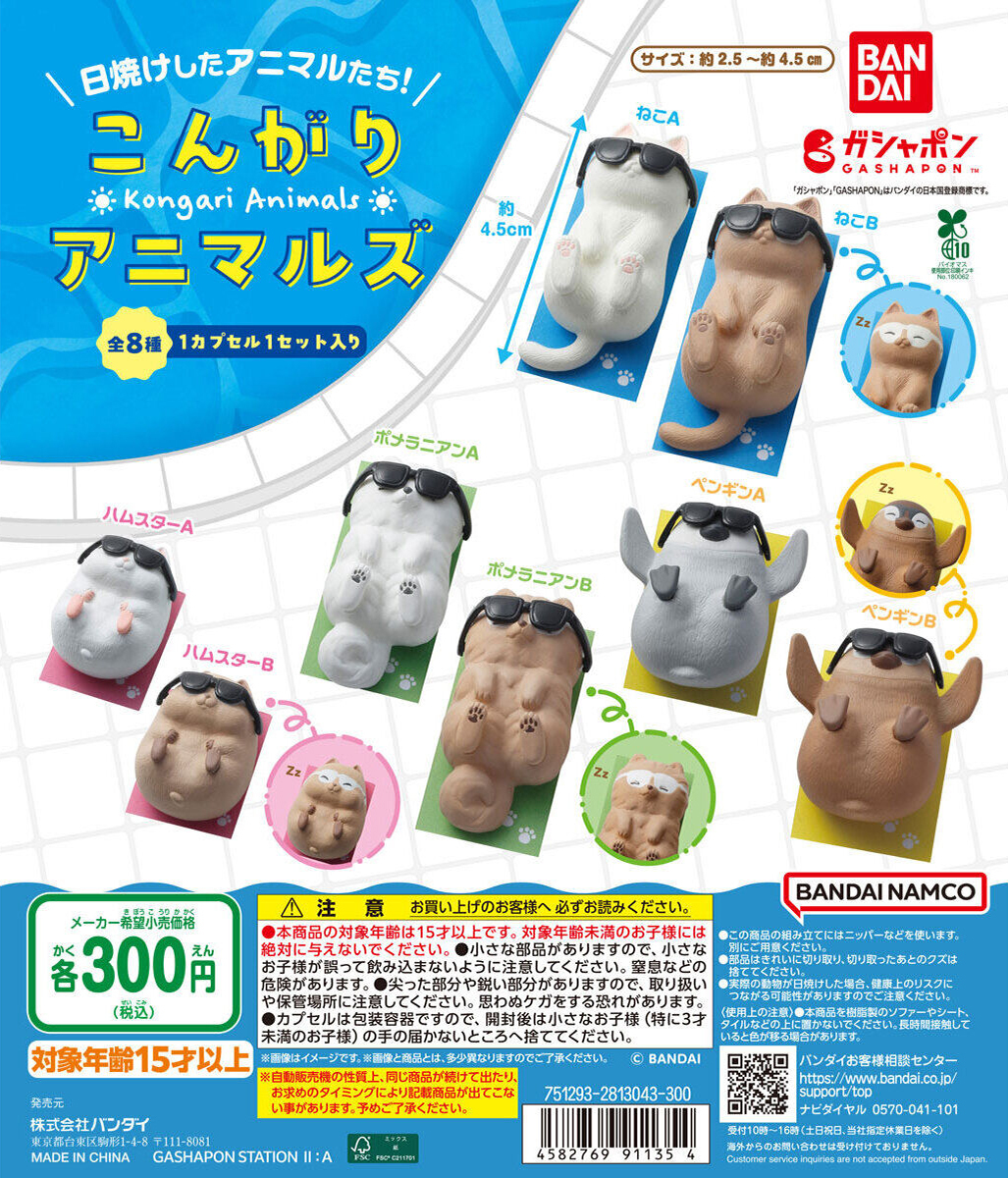 日本 BANDAI 玩具公司轉蛋事業部 GASHAPON 將在 2025 年 8 月的第四週發售一套相當有意思的擬人化動物轉蛋「曬得恰到好處的動物們」(暫譯,こんがりアニマルズ)!建議售價為每轉 300 日幣,一共有八種款式可以收集。