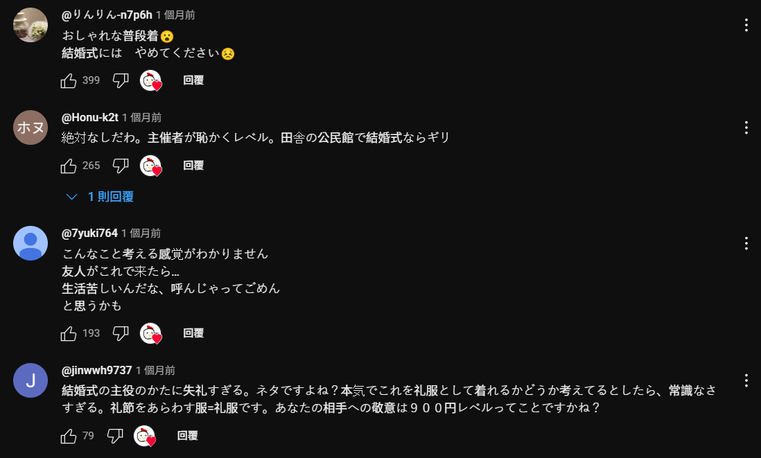 許多網友認為這根本就不夠敬重結婚的友人,為何對方結婚還要挑一個特價服裝去參加,難道你對新人的敬賀之意就只值這點錢嗎 ?