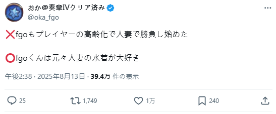 消息公布之後,不少玩家在 X 上發文直喊,隨著 FGO 玩家的年紀越來越長,官方也懂要賣人妻泳裝來吸引大家的目光了。