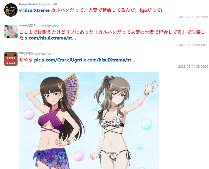 官方於昨日 ( 8/13 ) 推出全新夏日限定活動,本次最大亮點之一是實裝五星「泳裝兩儀式」等許多新角色的泳裝樣貌,由於這次新角色設定大多都為人妻,立刻在玩家社群掀起一波「人妻泳裝」熱議。