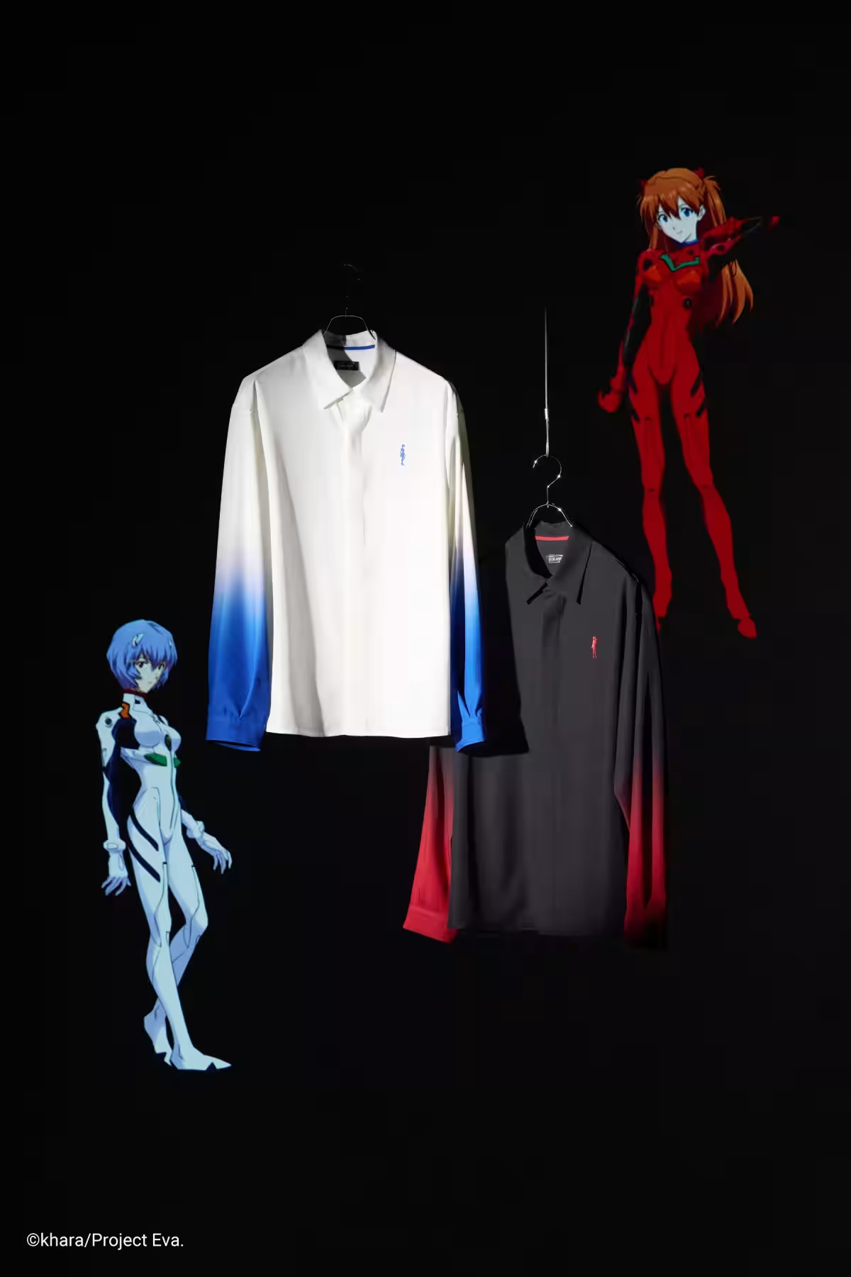 以角色代表色漸層表現,左胸印有角色圖案,背後則繡上插入栓服的編號。有明日香與綾波零兩款。