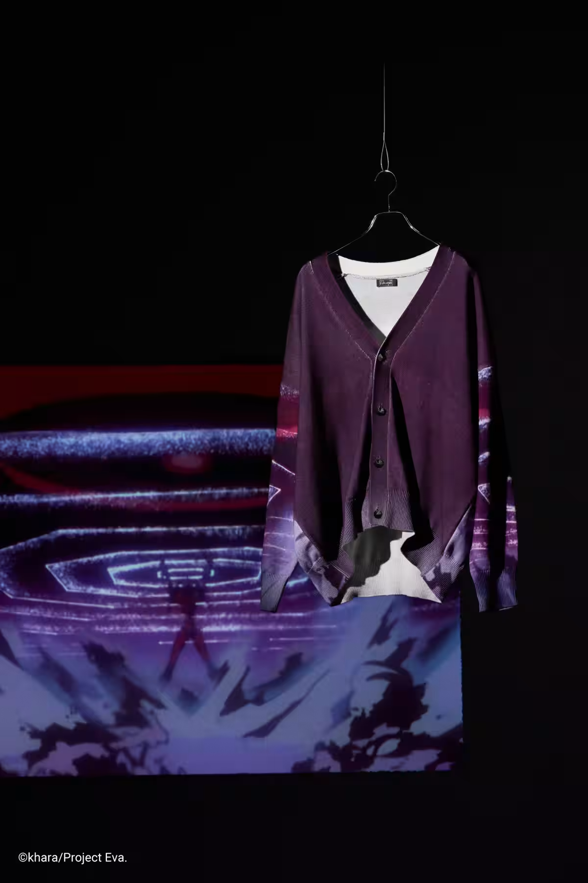 大膽印上 A.T. Field 全開的場景,透過精緻印刷在面料上,鈕扣使用原創 A.T. Field 設計款。