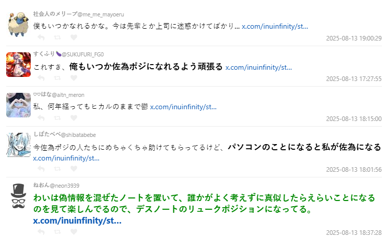 不少網友分享自身經驗,從「被上司帶領的菜鳥」到「帶新人上路的前輩」,體會到成長的過程與責任的重量;也有人幽默回應,「我在電腦相關的事上變成佐為」、「我比較壞,我應該是《死亡筆記本》的路克」。
