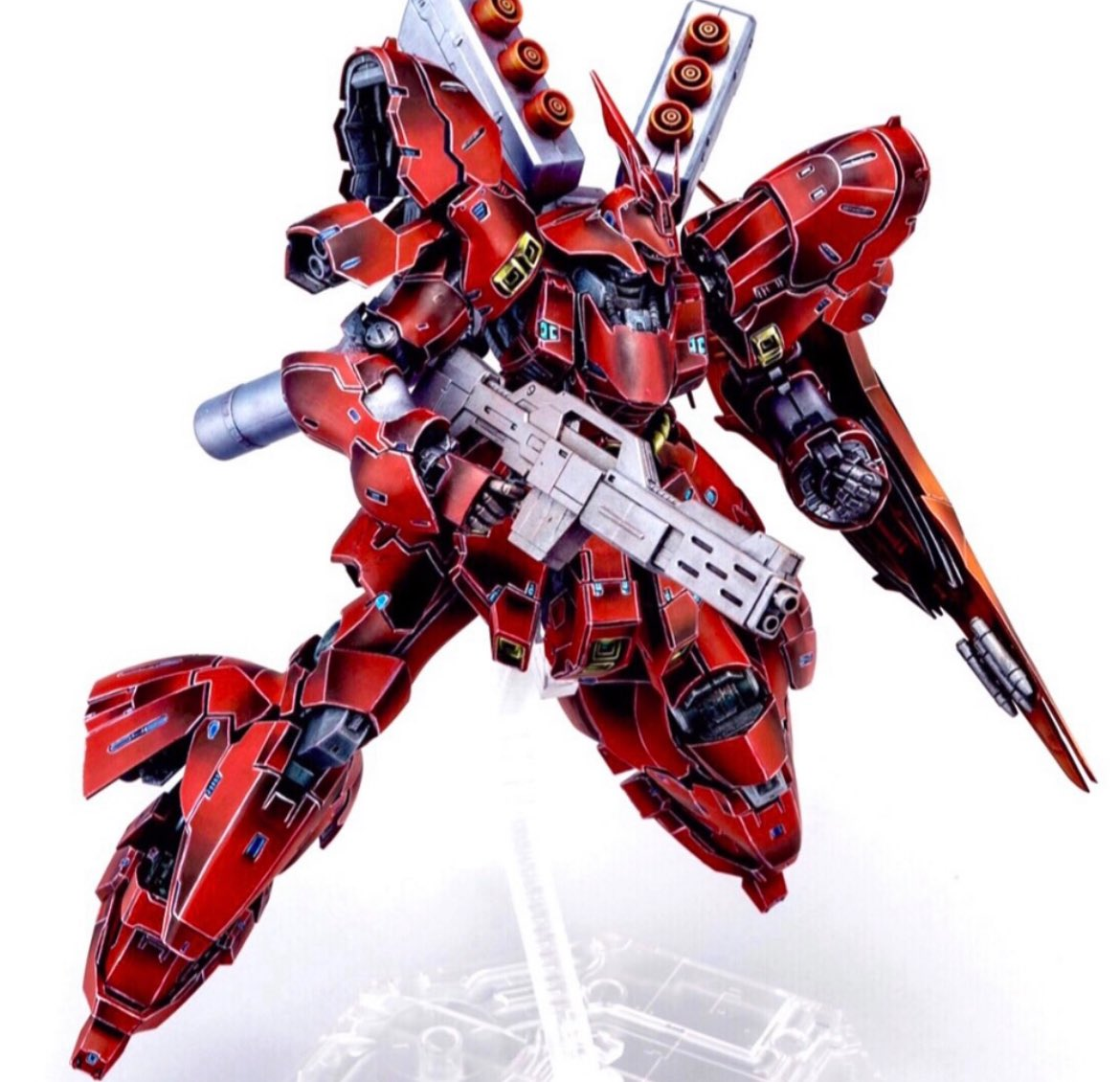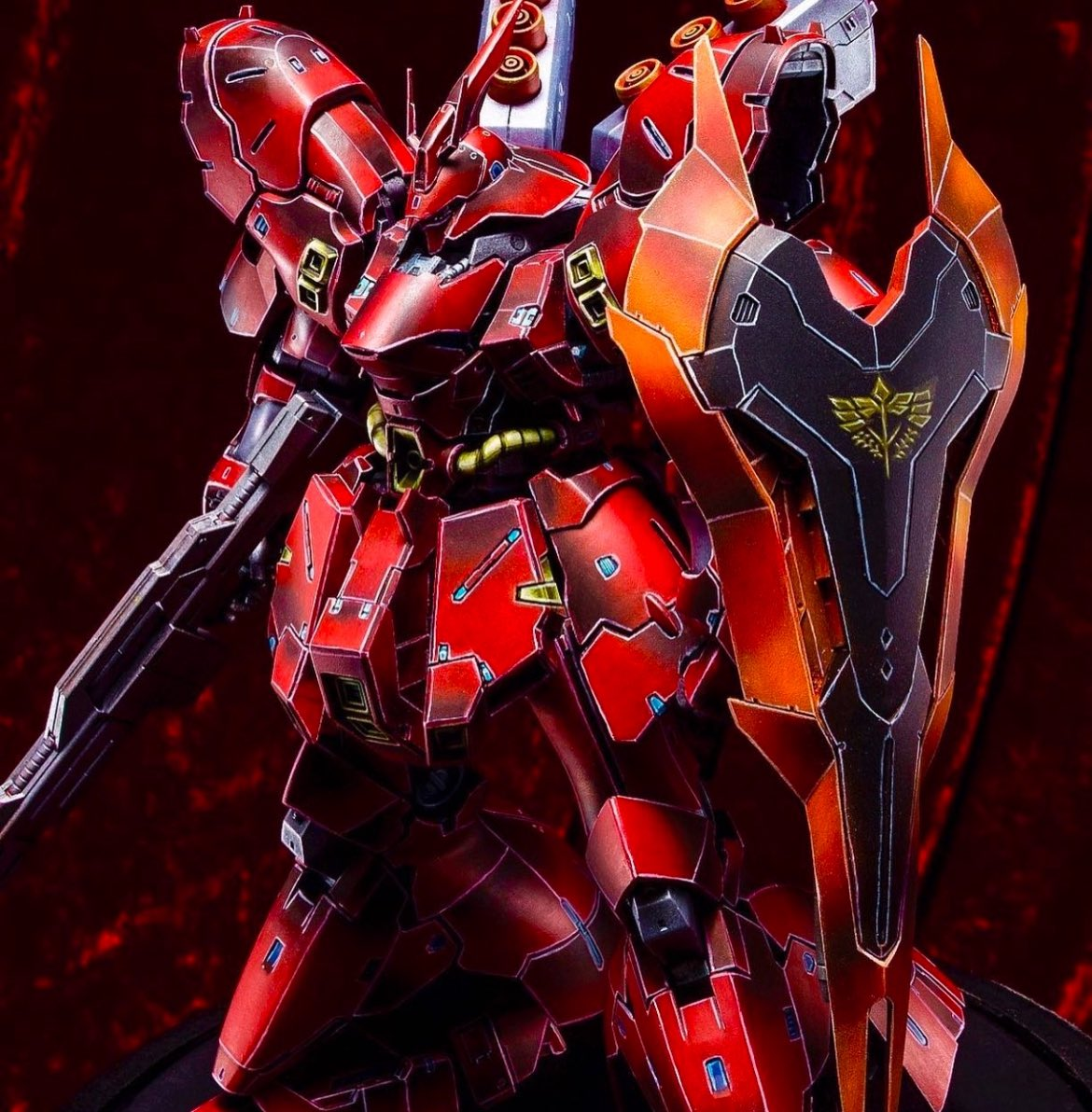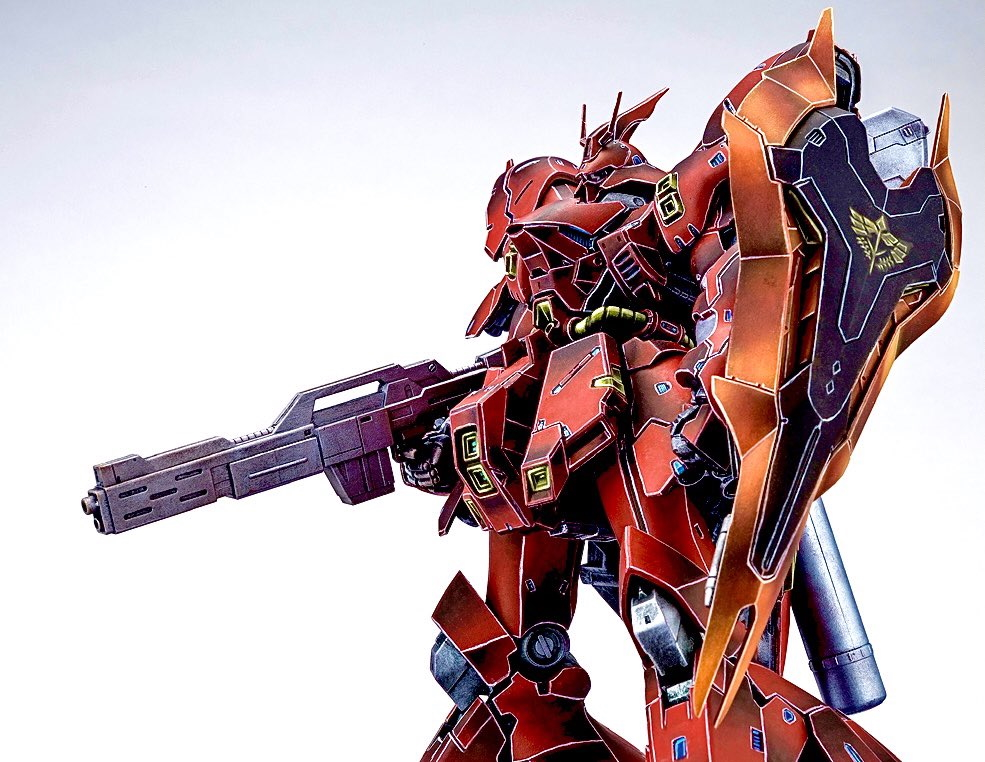 她選擇塗裝的是《機動戰士鋼彈 逆襲的夏亞》中夏亞駕駛的機體「RG 1/144 沙薩比」,他以「筆塗」為標題貼出作品,雖然知道是上色完成的模型,但乍看之下真的像手繪插畫一樣。從輪廓線、光影到漸層的處理,都讓人懷疑自己眼睛壞掉,塗裝技術簡直逆天!