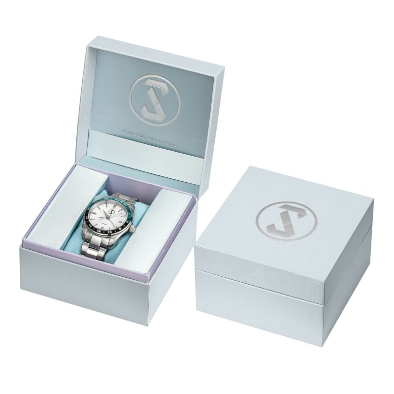 這次是以遊戲中角色「星奈」與「彩奈」 為靈感設計的機械式腕錶,概念是兩人送給每天辛苦工作的「老師」的一份禮物。錶款配色分別以藍色與黑色代表兩人為概念,圍繞在錶盤的外圈上,時針設計則以兩人的小傘為靈感。