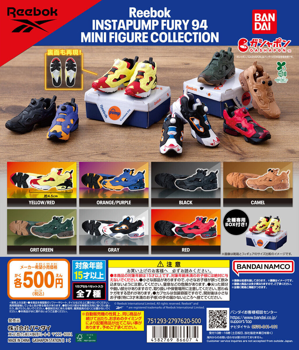 日本萬代玩具公司旗下轉蛋事業部 GASHAPON 與運動品牌 Reebok 攜手推出經典鞋款「INSTAPUMP FURY」的迷你球鞋收藏之後,又將於 2025 年 8 月第五週開賣「INSTAPUMP FURY 94」的迷你球鞋收藏第二彈!建議售價為每轉 500 日幣,一共有七種款式可以收集。