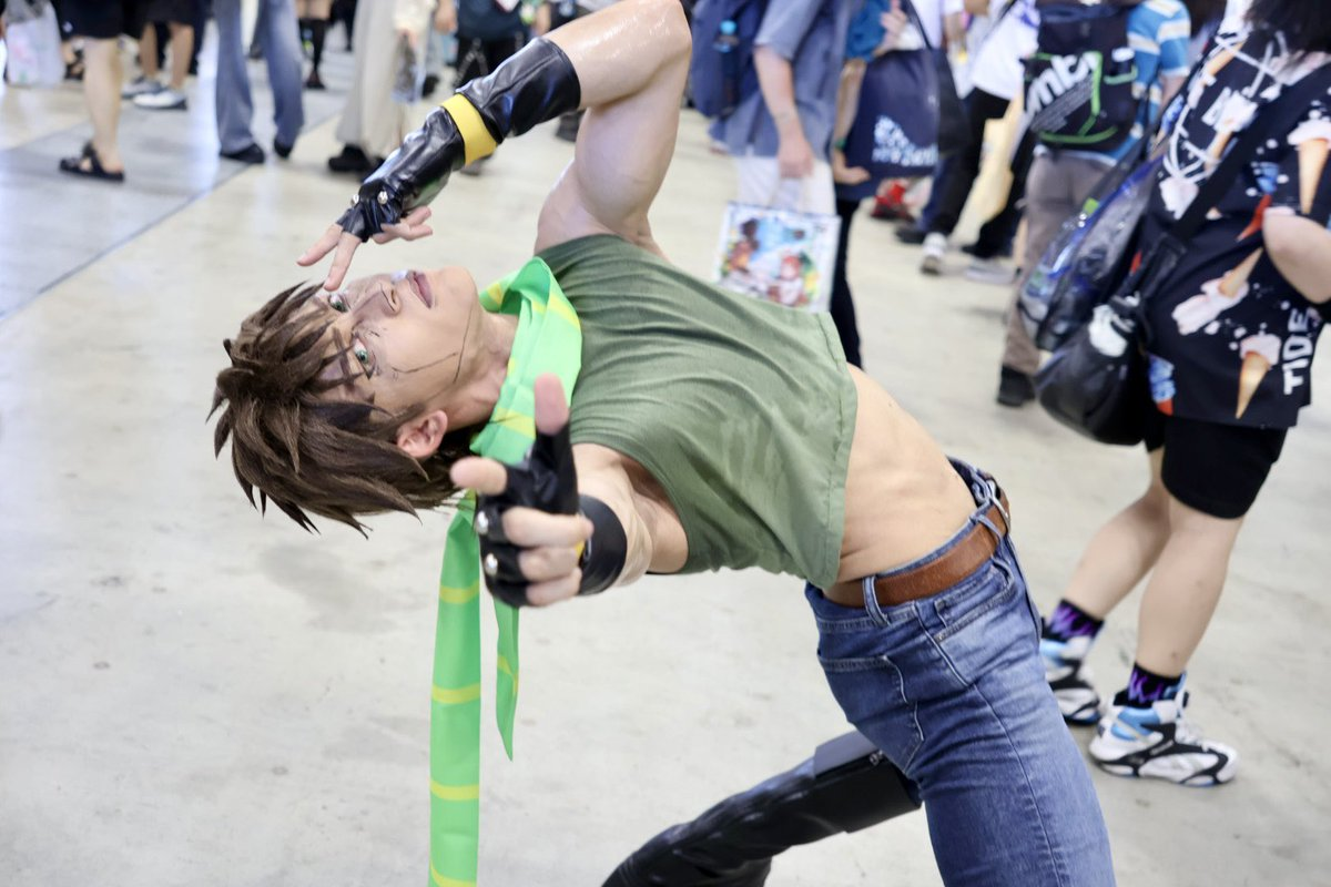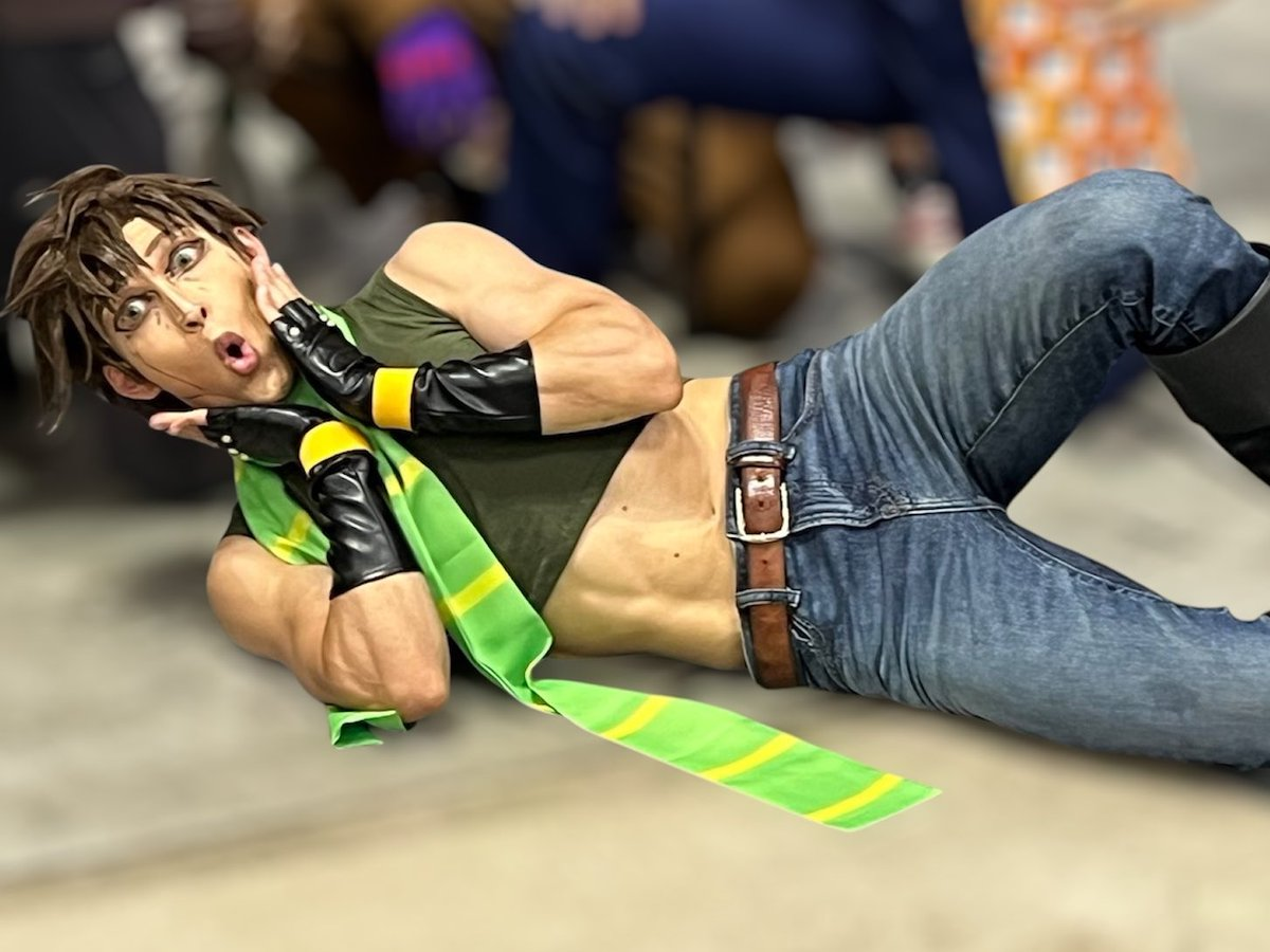 不過這其實是他 C106 的第一天出角,第二天他又換成《JOJO的奇妙冒險》第二部《戰鬥潮流》的主角喬瑟夫·喬斯達,當然也必須展現 JOJO 立 XD。