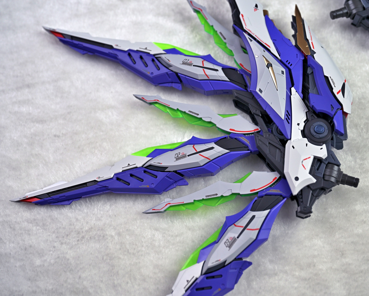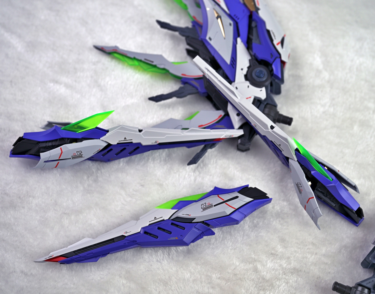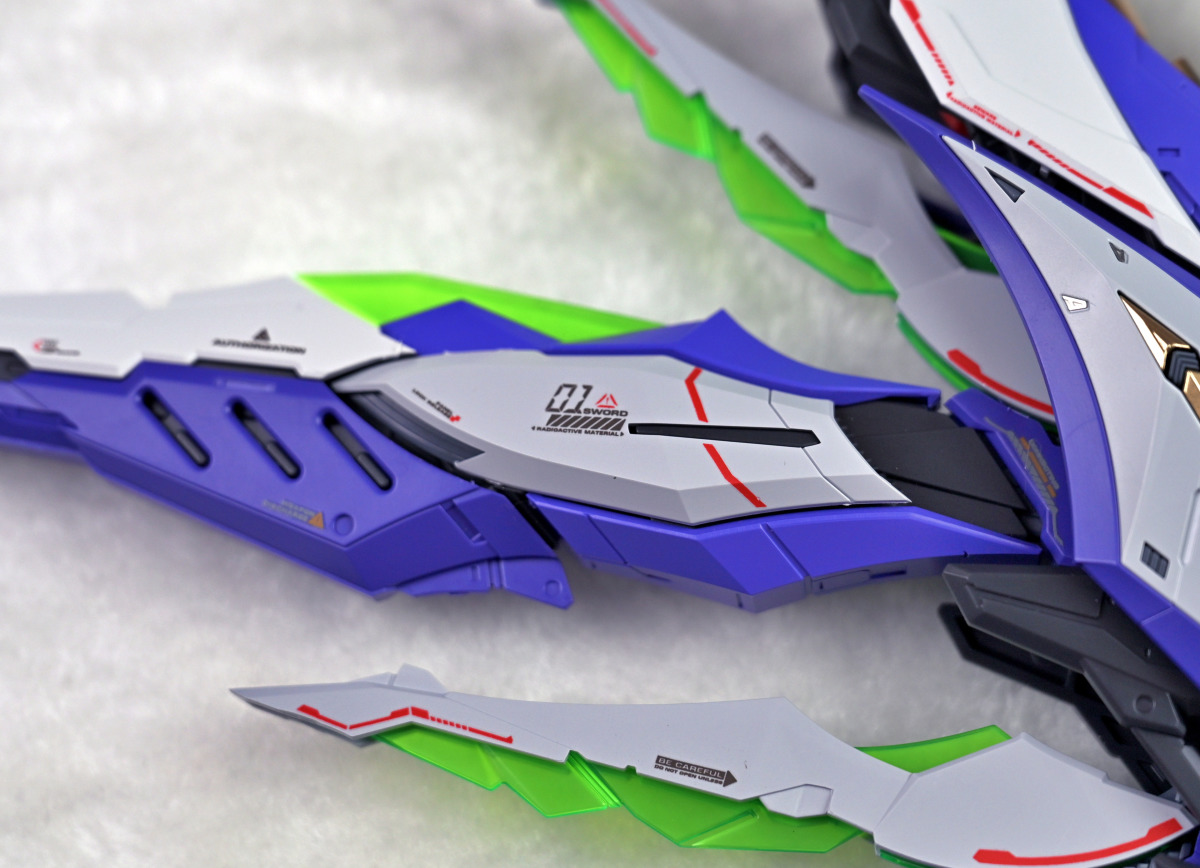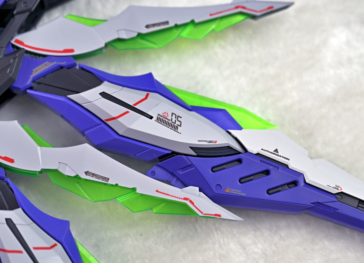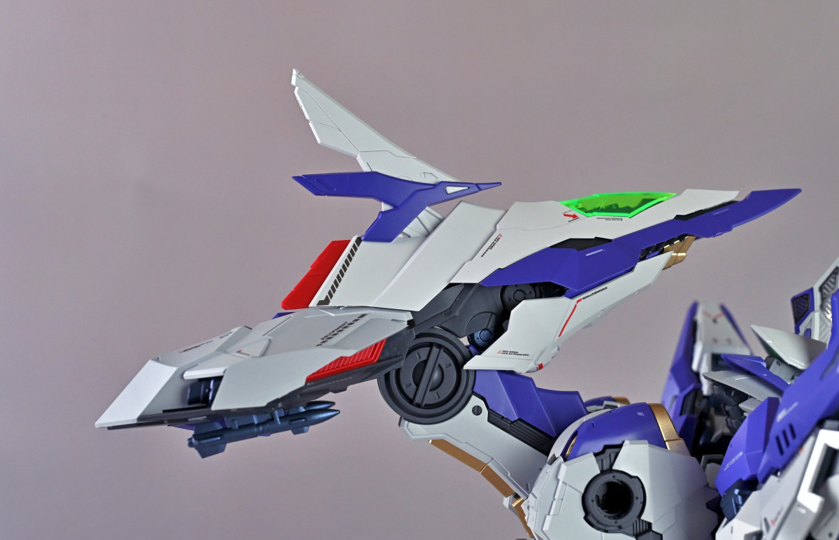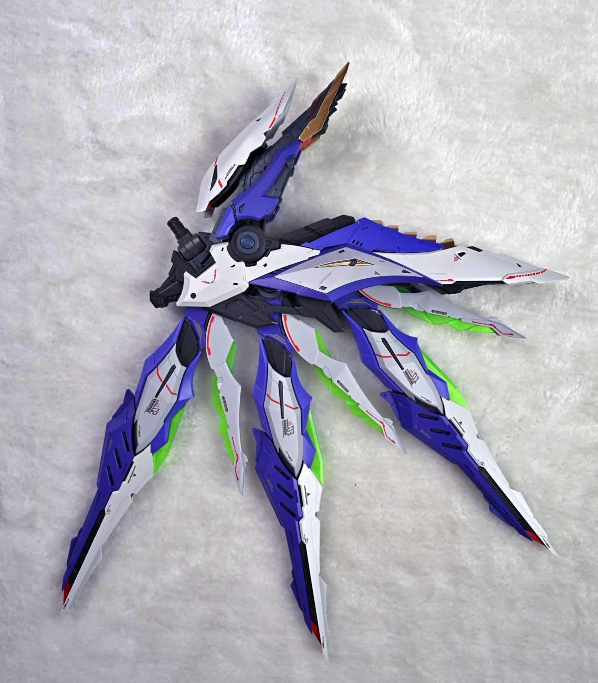 ▼搭載浮游炮的翅膀,這個翅膀真的真的真的有夠~~~難裝!! 大力金剛指是必須的而且還壓不太下去,太大力怕斷掉,太小力又進不去,翅膀贈送我天幕的板友有提醒我,不要按照說明書的順序組裝然後拆來拆去,因為一不小心就會斷掉而且這個裝進去後真的真的真的很難拆,所以我刻意留在最後等拍完照後再統一組裝。