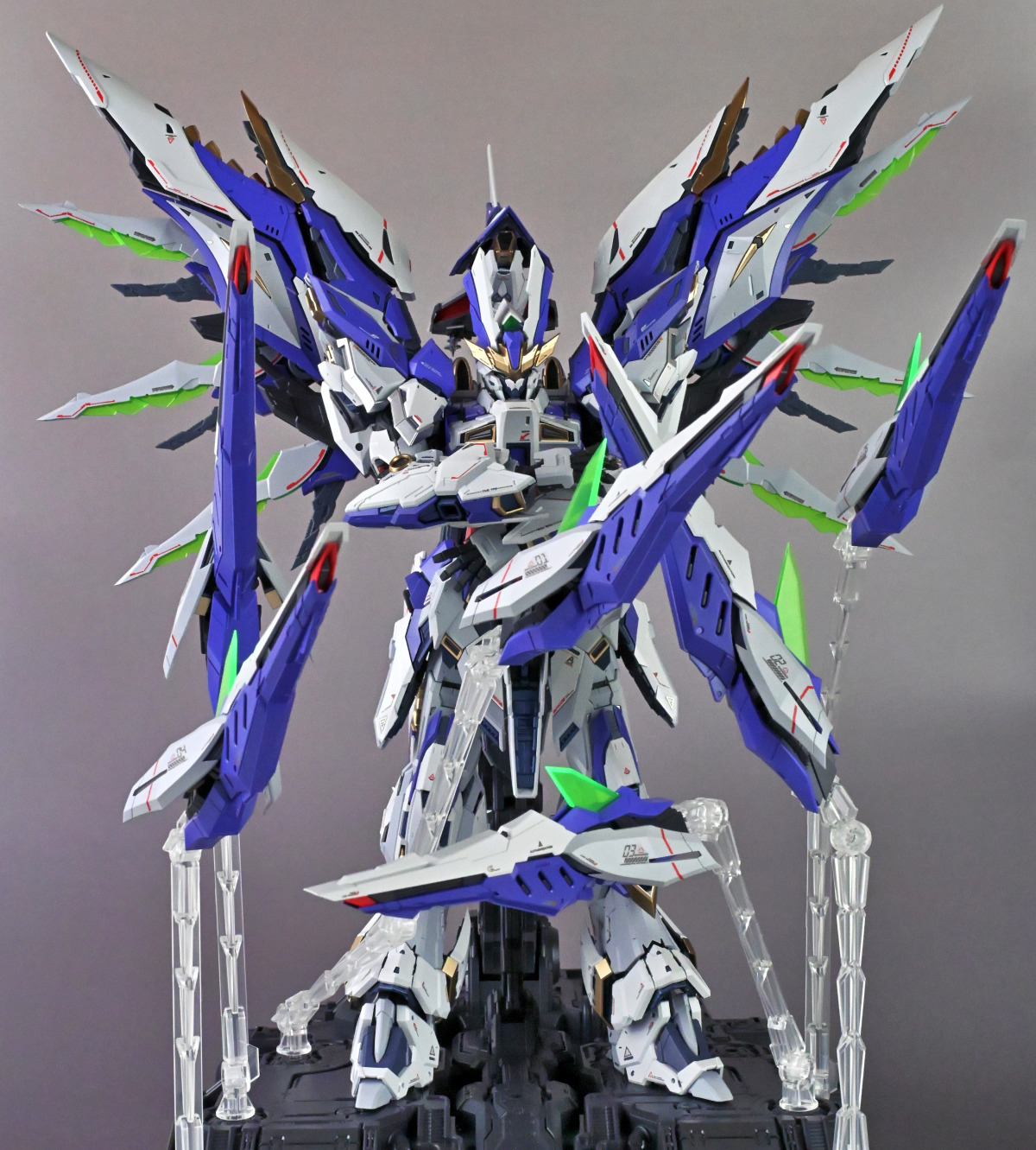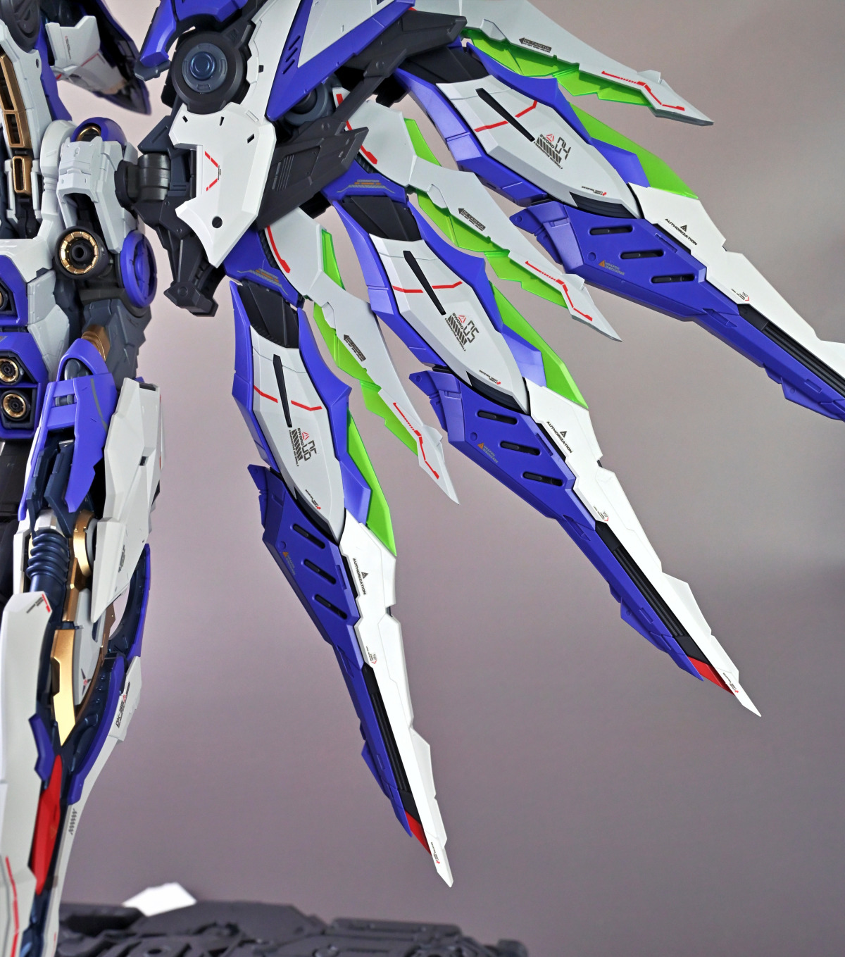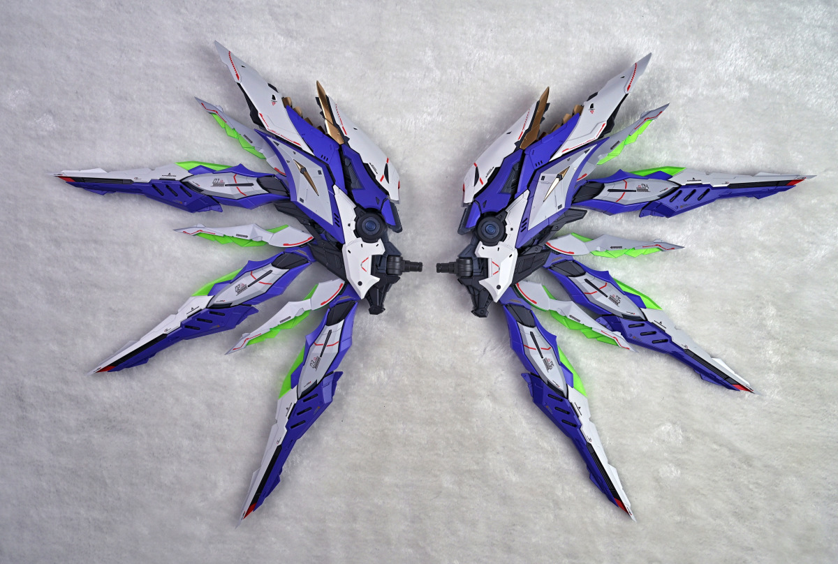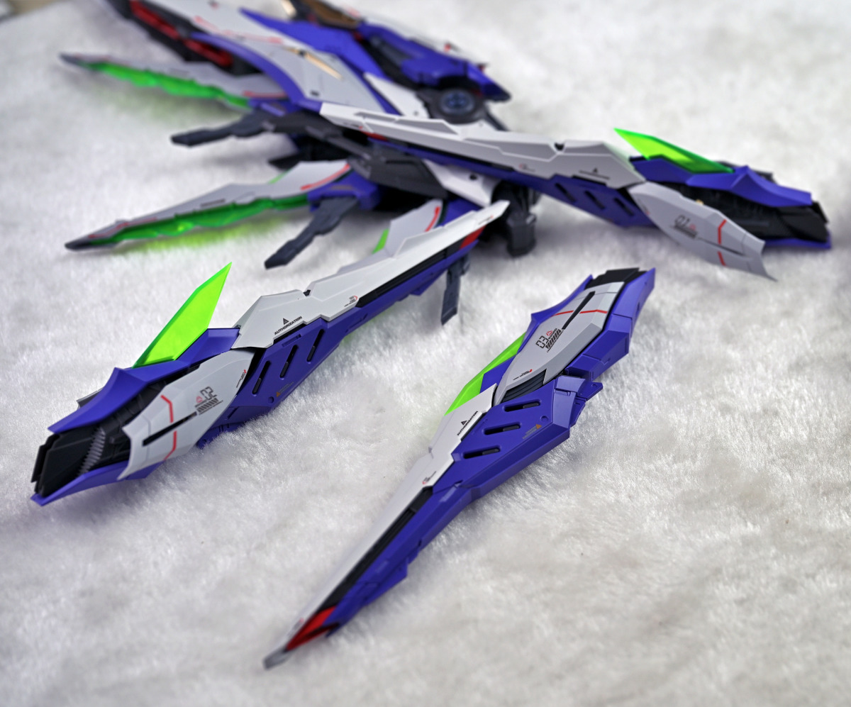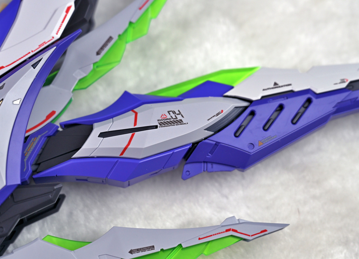 ▼搭載浮游炮的翅膀,這個翅膀真的真的真的有夠~~~難裝!! 大力金剛指是必須的而且還壓不太下去,太大力怕斷掉,太小力又進不去,翅膀贈送我天幕的板友有提醒我,不要按照說明書的順序組裝然後拆來拆去,因為一不小心就會斷掉而且這個裝進去後真的真的真的很難拆,所以我刻意留在最後等拍完照後再統一組裝。