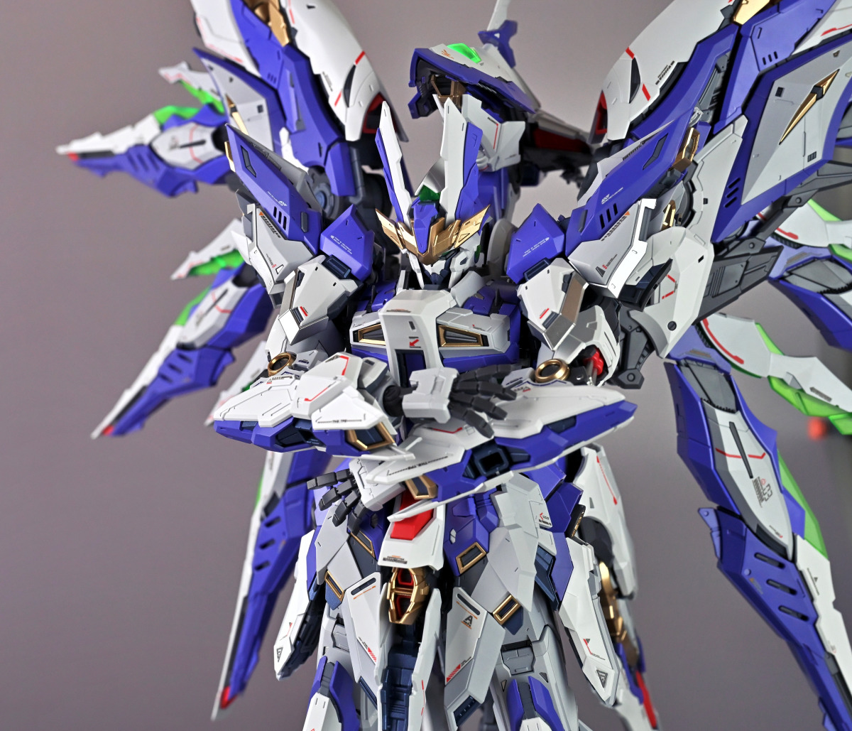 就這樣不到幾天的時間從上海寄到台灣的天幕就到了我的手上,收到模型後當下安排第一時間的製作,組裝過復仇女神這種堆疊式的內構套件相較於天幕就輕鬆許多,唯一要抱怨的大概就是某些地方的組裝體驗真的真的很痛,因為要使用到了大力金剛指而且還是不能借助外部工具只能單純用大拇指壓進去特別是翅膀和背包的結合,組裝完這台天幕後整個手痛到不行整整痛了三天因為真的有夠難壓!