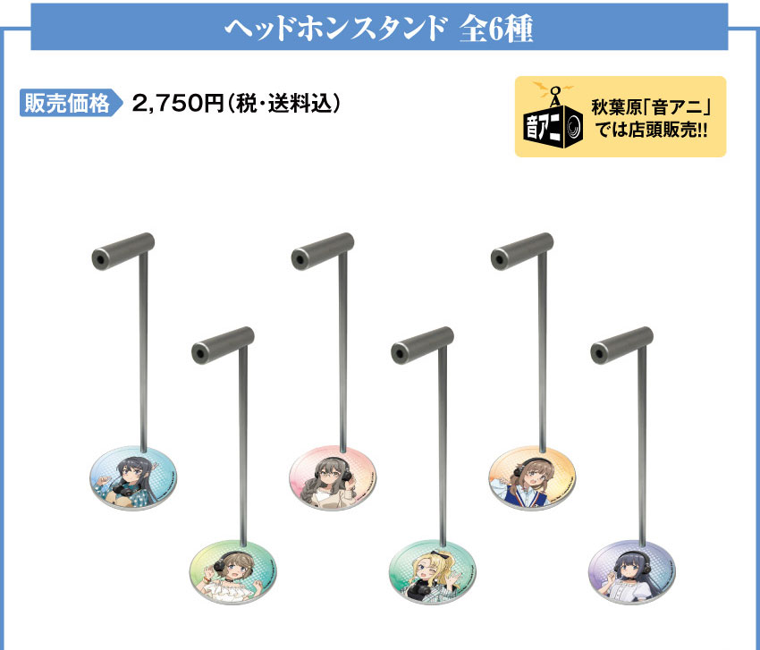 除了耳機本體之外,還會同步推出 A4 透明資料夾、壓克力立牌、徽章、鋁製耳機架、耳機收納袋 等周邊商品。也都是本次聯名特別繪製的人物插圖,也都有戴上耳機。
