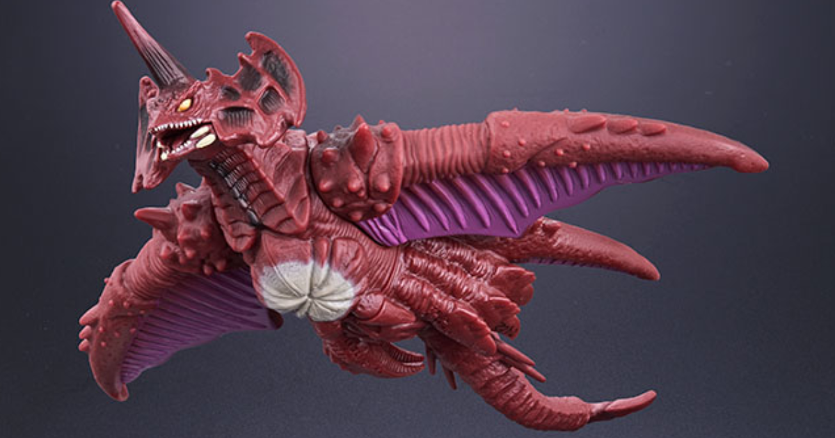 「MOVIE MONSTER 戴斯特洛伊亞(飛翔體)」為全長約 22 公分的不可動軟膠模型,以細膩造型製作劇中擁有飛行能力的「飛翔體」形態,再現特徵的巨大雙翼、甲殼上高密度的尖刺,並藉由色彩塗裝表現紅色甲殼的深淺、翼膜和眼睛等多處分色。