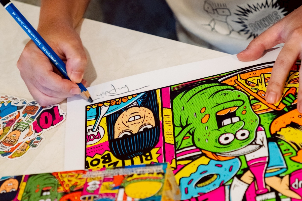 TM paint is a Japanese illustrator who has been active across major record labels and music festivals, creating iconic visuals in the trend and street culture scene. Since 2017, when he designed the main visuals for the FireBall Festival, his recognition in Taiwan has skyrocketed! You’ve probably seen his popular character — the screaming lemon, Mr. Flame — one of his most well-loved creations.
