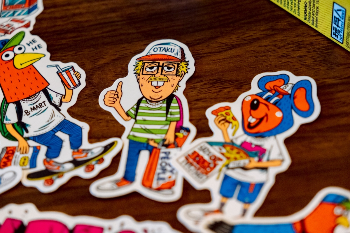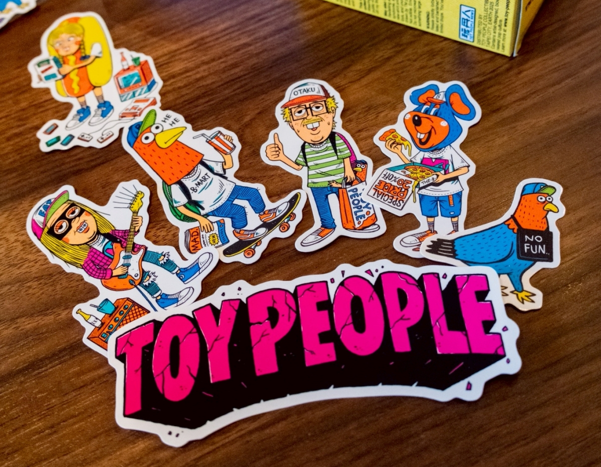 The Sticker Pack features six main characters specially selected from the artwork, each redrawn by TM paint with full-body designs and unique personality. In addition, the set includes one TOY PEOPLE logo sticker, making a total of 7 stickers per pack.