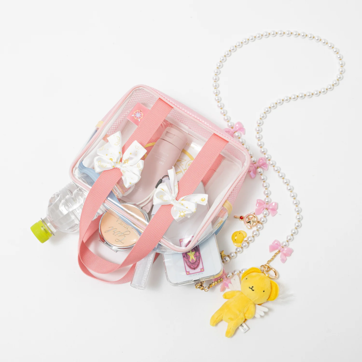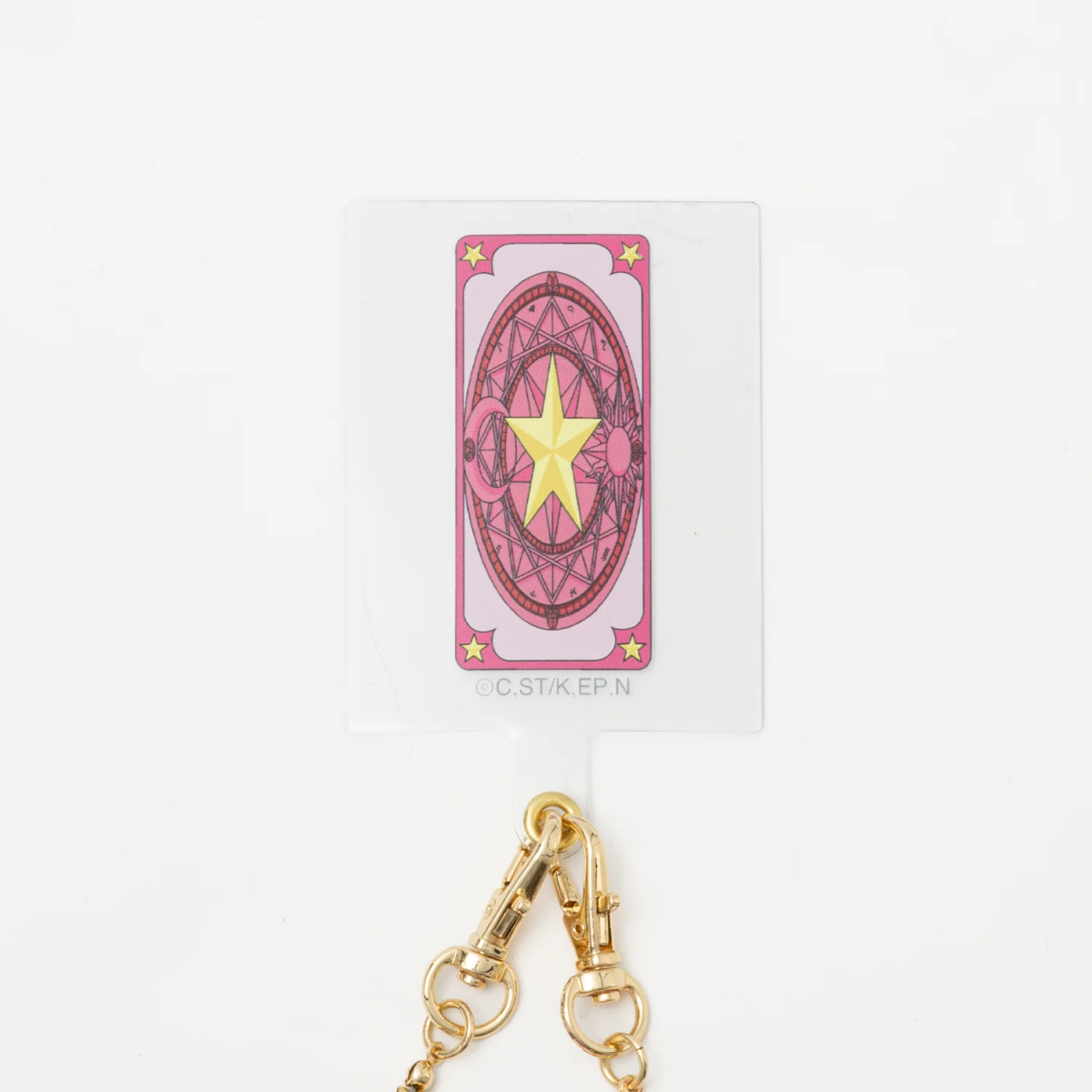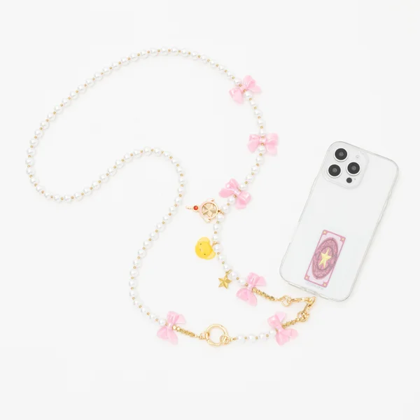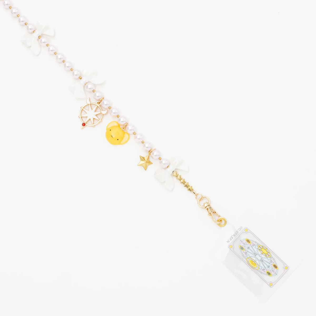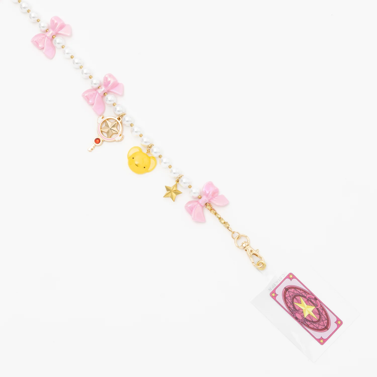 「星之鑰」款,吊繩上點綴了閃閃發亮的白珍珠和粉嫩色緞帶,靈感來自《小櫻牌篇》裡的小櫻造型, 當然少不了「小可」和「星之鑰」的吊飾!