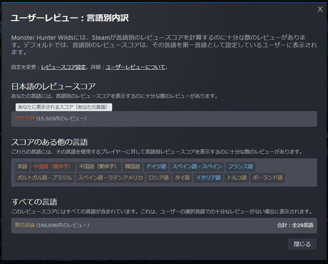 遊戲平台 Steam 最近新增了「依國家查看評論」的功能,有網友發現,不管是哪款遊戲,日本玩家的評價幾乎都是全球最低。引發討論的是,這並不是因為日本人特別挑剔,而是出於一種「抱怨會寫,稱讚懶得寫」的習慣。