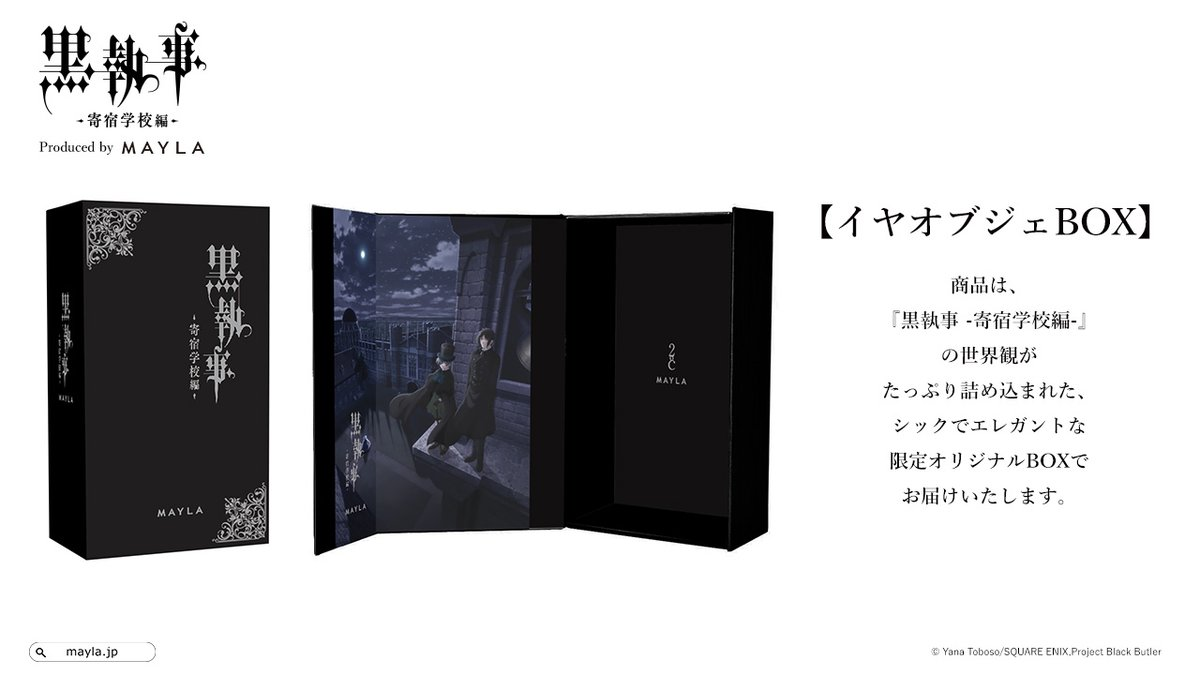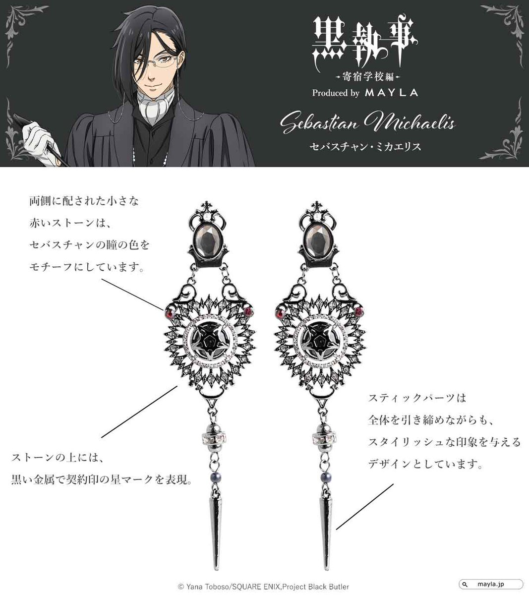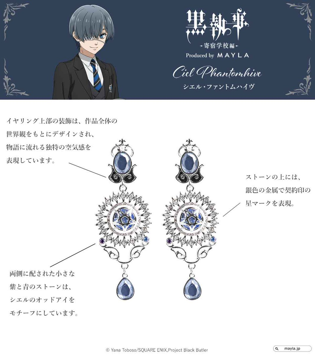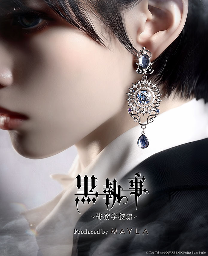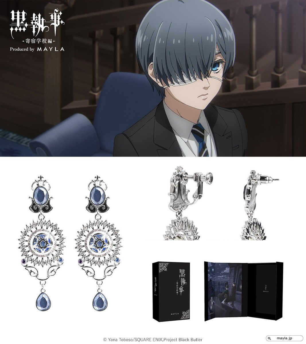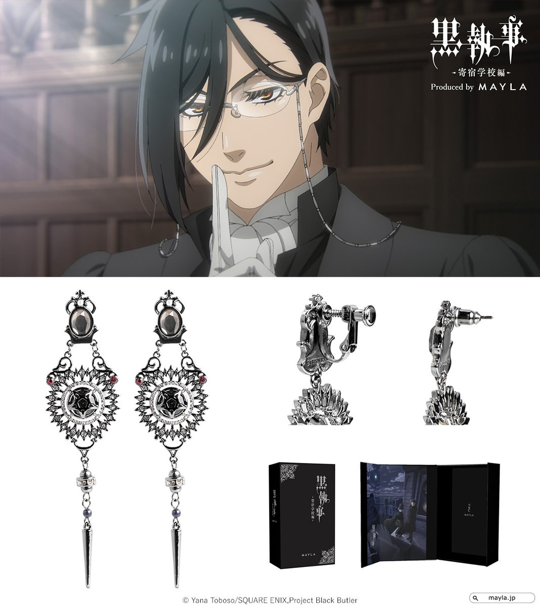 近日宣布將與去年 4 月播出動畫第四季的《黑執事 寄宿學校篇》,繼先前推出聯名高跟鞋後再次合作。這次改為推出以兩位人物為形象的造型耳飾,這也是 MAYLA 的招牌品項。售價為 19,800 日圓,目前已可於官方網站預購。