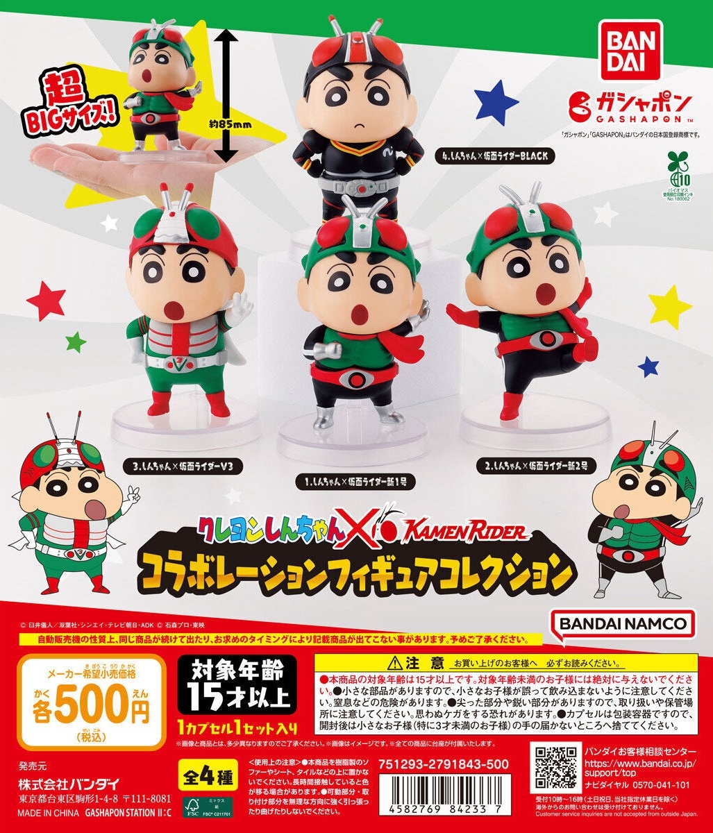 萬代公司轉蛋事業部 GASHAPON 將推出國民動畫《蠟筆小新》與經典特攝《假面騎士》系列聯名的主題新品——「蠟筆小新 ✕ 假面騎士 聯名收藏角色模型」轉蛋,參考售價為每轉 500 日圓,預計於 2025 年 09 月第四週開轉!
