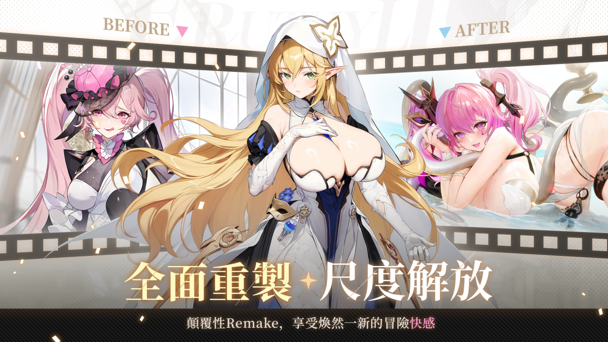 - 空前福利:本次 Remake 版本誠意滿滿,團長大人只要進入遊戲並展開冒險,就能獲得超過 1000 抽的空前福利,搭配簽到活動更能解鎖完整圖鑑,所有 SSR 女團通通免費入手,真正實現「零課金也能盡情體驗」。