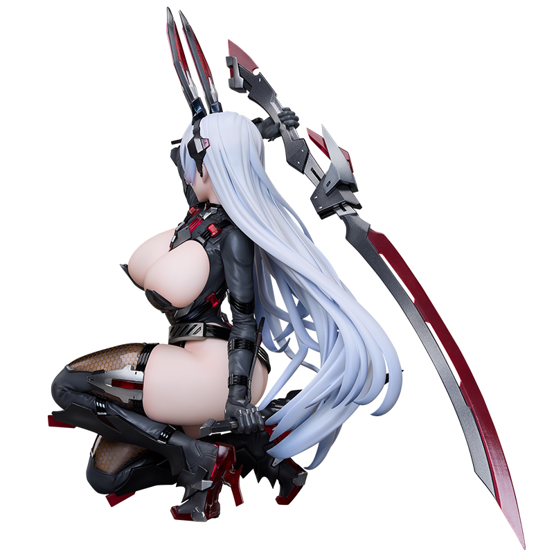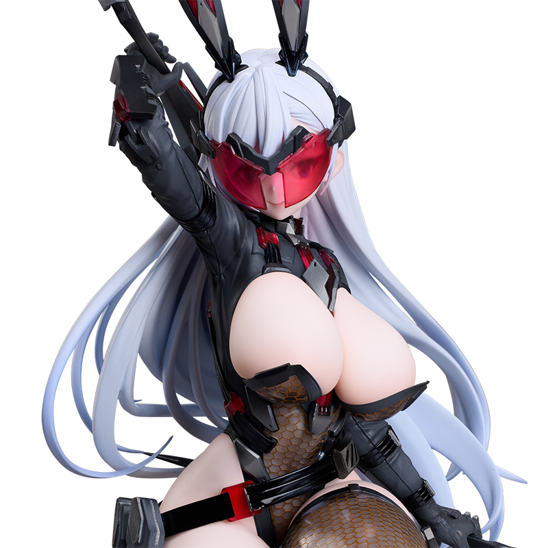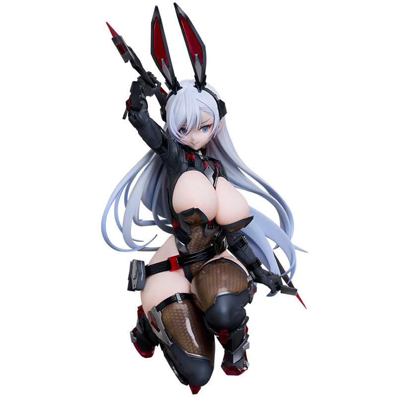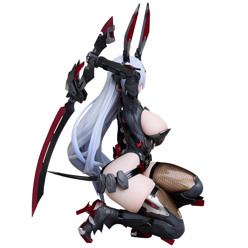 本作高約 23 公分,不僅將 saitom 筆下獨特的機械風兔女郎套裝考究還原,原畫當中的豐滿肉感在立體化之後可說是更加驚人,整體散發壓倒性的存在感!厚重且精密的黑色裝甲與裝置,以及位於腹部、大腿、背部,具備通透視覺效果的網狀零件,加上白皙柔軟肌膚所堆疊出的豐沛層次感實在相當精彩!轉到背面更是會被那完美無瑕的渾圓曲線徹底折服。