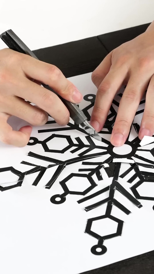 接著,他在電腦繪製雪花般的血鬼術「破壞殺・羅針」陣法圖案,印出來後貼在黑板上,然後依照圖案切割出形狀。