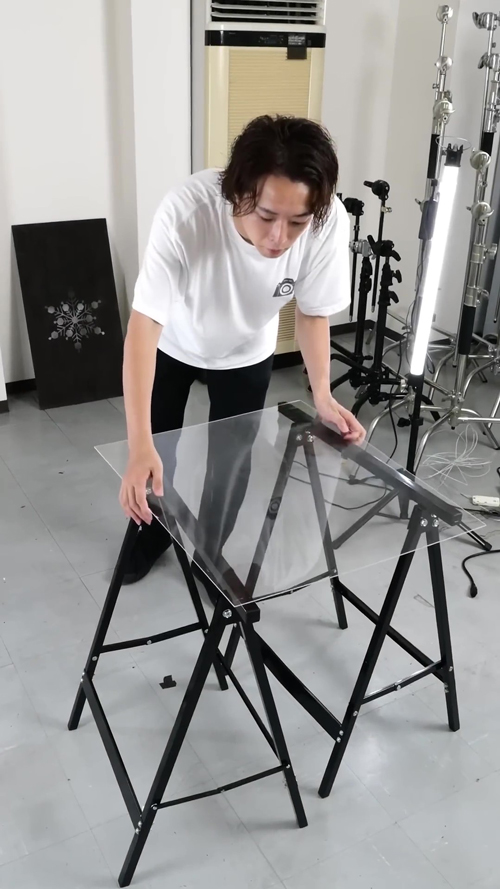 拍攝環境方面,他準備一張玻璃桌,把做好的「破壞殺・羅針」放在上面,背後再加上黑色背景,從下方與側面打上藍光,正面用單眼相機拍攝。最後,將猗窩座模型放在切割好的陣法中央,加上煙霧效果,開始連拍十多張。