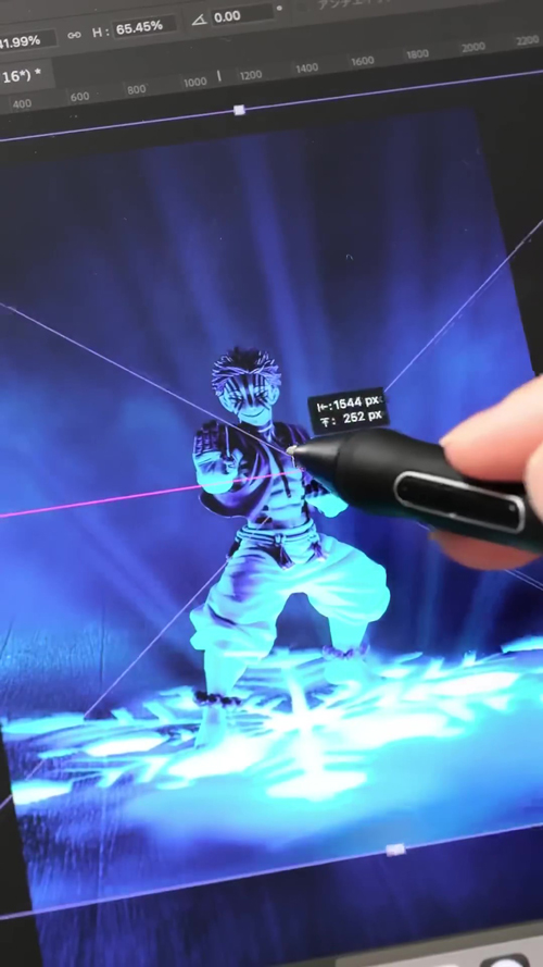 後製時,他再用軟體調整光影與煙霧的細節,讓整體更有臨場感。最終完成的作品中,藍白色的雪花陣彷彿從地面浮現,周圍煙霧繚繞,猗窩座整個氣場全開,像是動畫特效般出色。