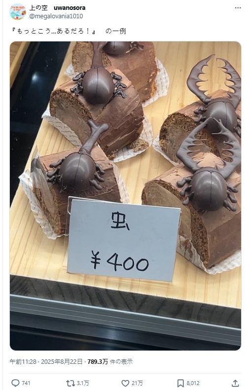但最近日本 X 上,有間蛋糕店的作品讓人感到相當意外,是讓人第一眼看到會嚇到的「甲蟲蛋糕」,由於造型算是可愛卻又有點讓人感到「咦」的樣貌,瞬間在社群上掀起話題。