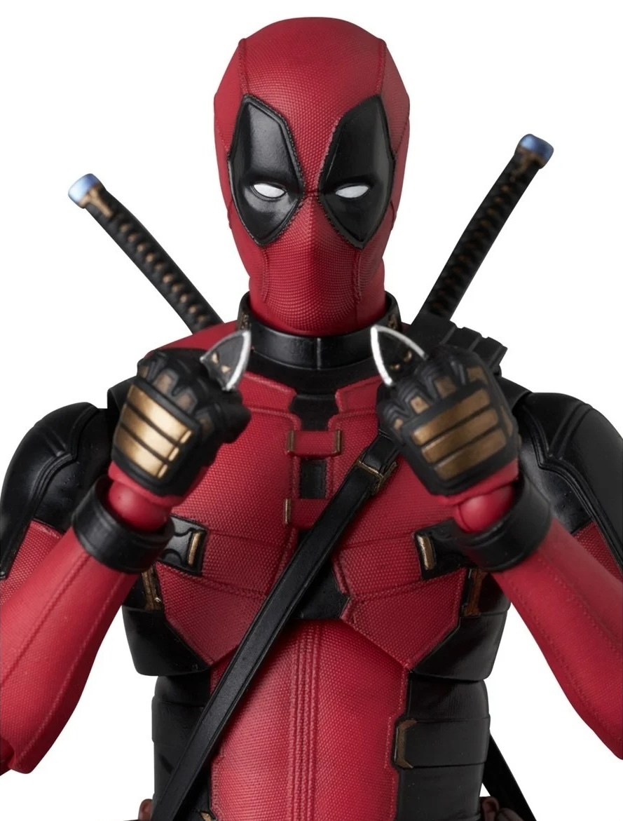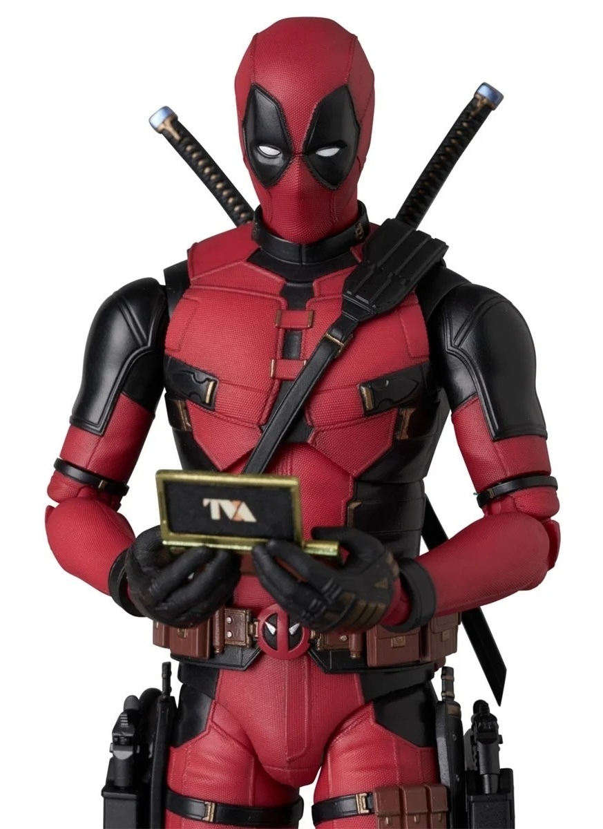 本次的死侍可動人偶高約 16 公分,採用電影中由漫威服裝設計師打造的鮮豔戰服,以精緻的雕刻及塗裝再現新戰衣上的紋理與質感細節。配件收錄有五種替換頭雕、多組替換手、TVA 的時空傳送器以及標誌的兩把武士刀、寶寶小刀、手槍、黃金點 50 沙漠之鷹手槍、羅根的亞德曼拉金屬胳膊、裝有羅根利爪的手臂等豐富的武器配件,更附上了超可愛的狗侍(Dogpool)模型,可以配合靈活可動與同步推出的「金鋼狼」一起擺設重現電影中各種有趣的互動橋段!