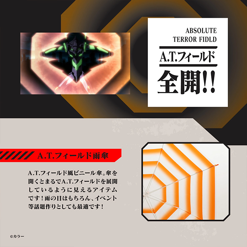 《新世紀福音戰士》官方商店 EVANGELION STORE 與日本株式會社岡本(オカモト)攜手,推出最新商品:「A.T.力場 雨傘」!參考售價為 3,980 日圓,目前已於 EVA STORE 發售。