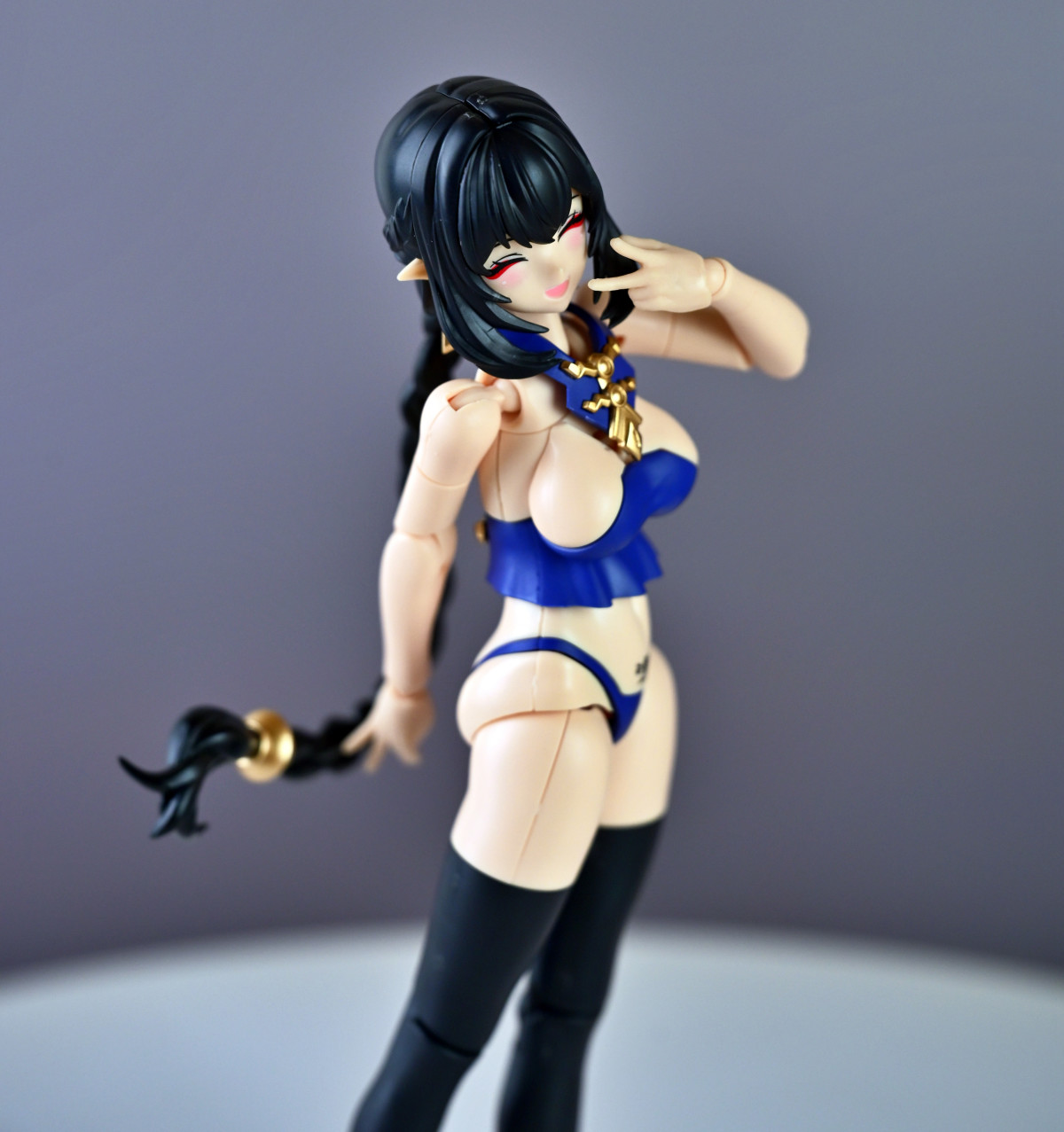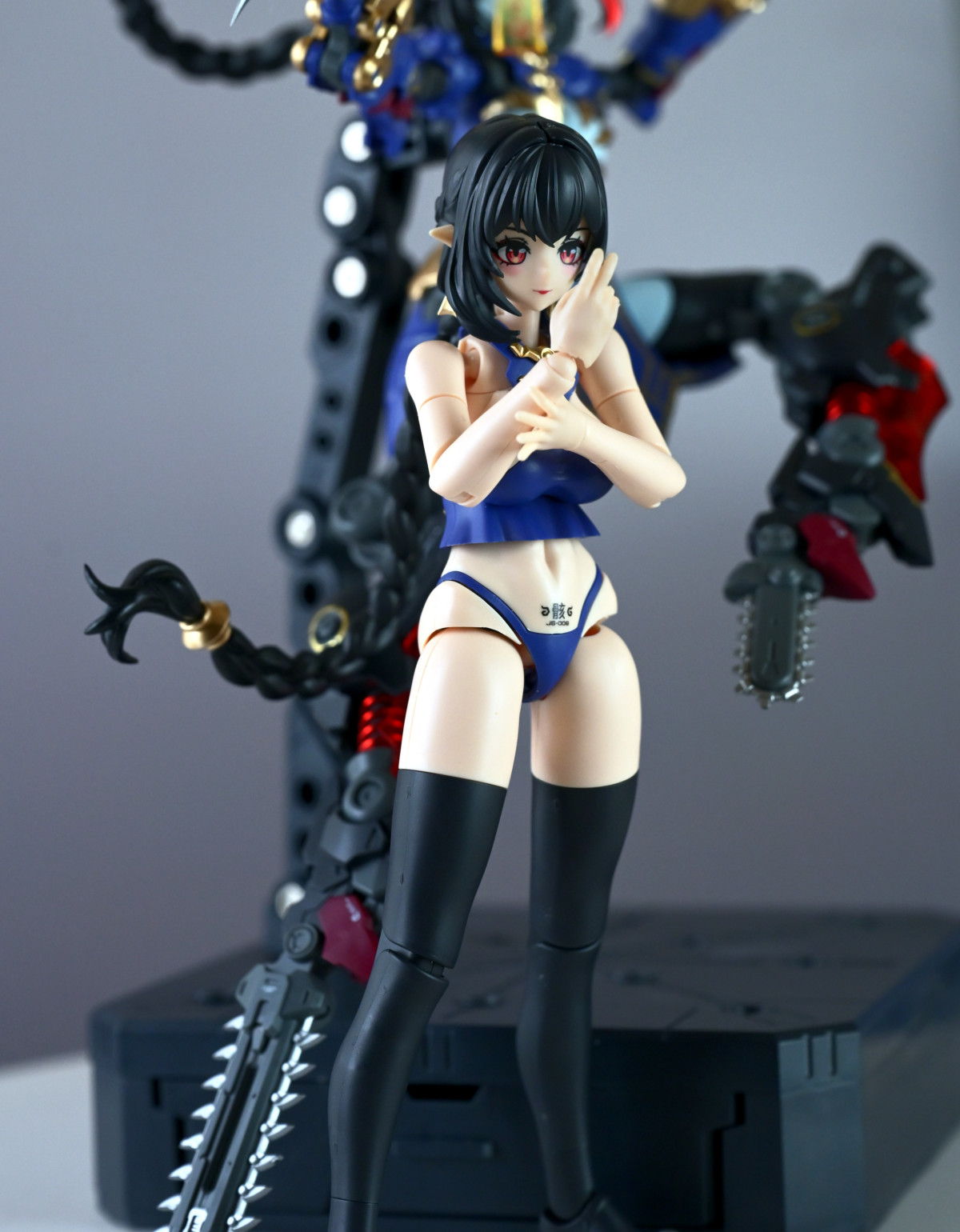 和模線出品的機娘品質還不錯完全不會輸給日本大廠壽屋出品的機娘,組裝完畢後零件的牢固性,把玩時候的可動性,零件的分色及預塗裝板件都是很不錯的品質,如果單純只是素組沒有上色的話湯口和零件間的接縫很明顯這也是在所難免。