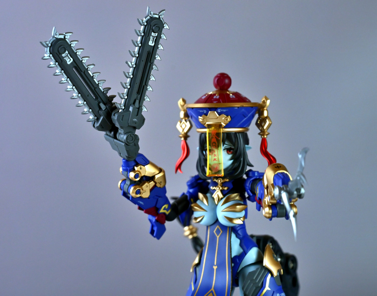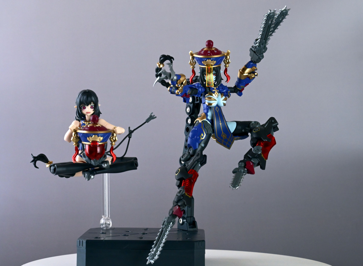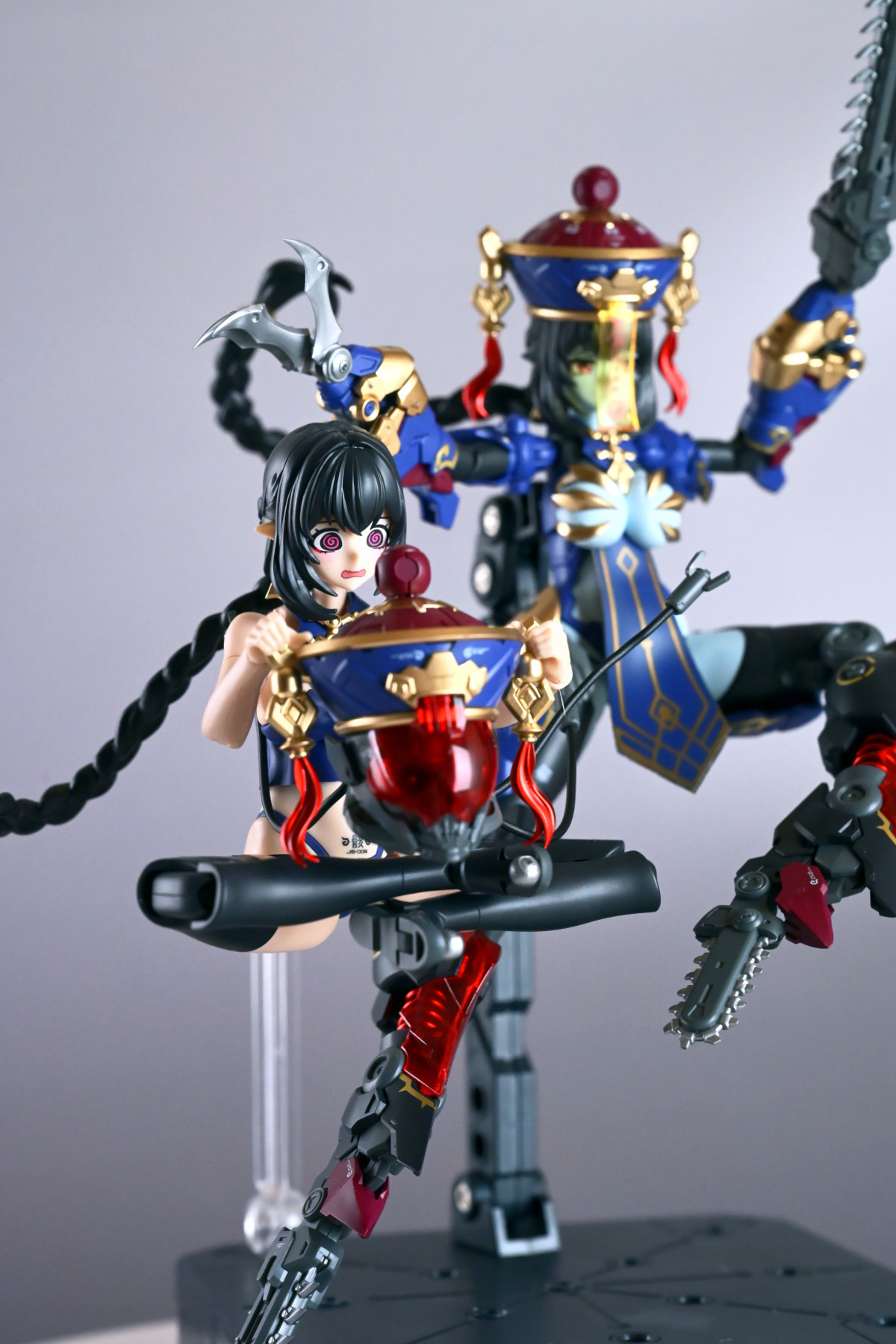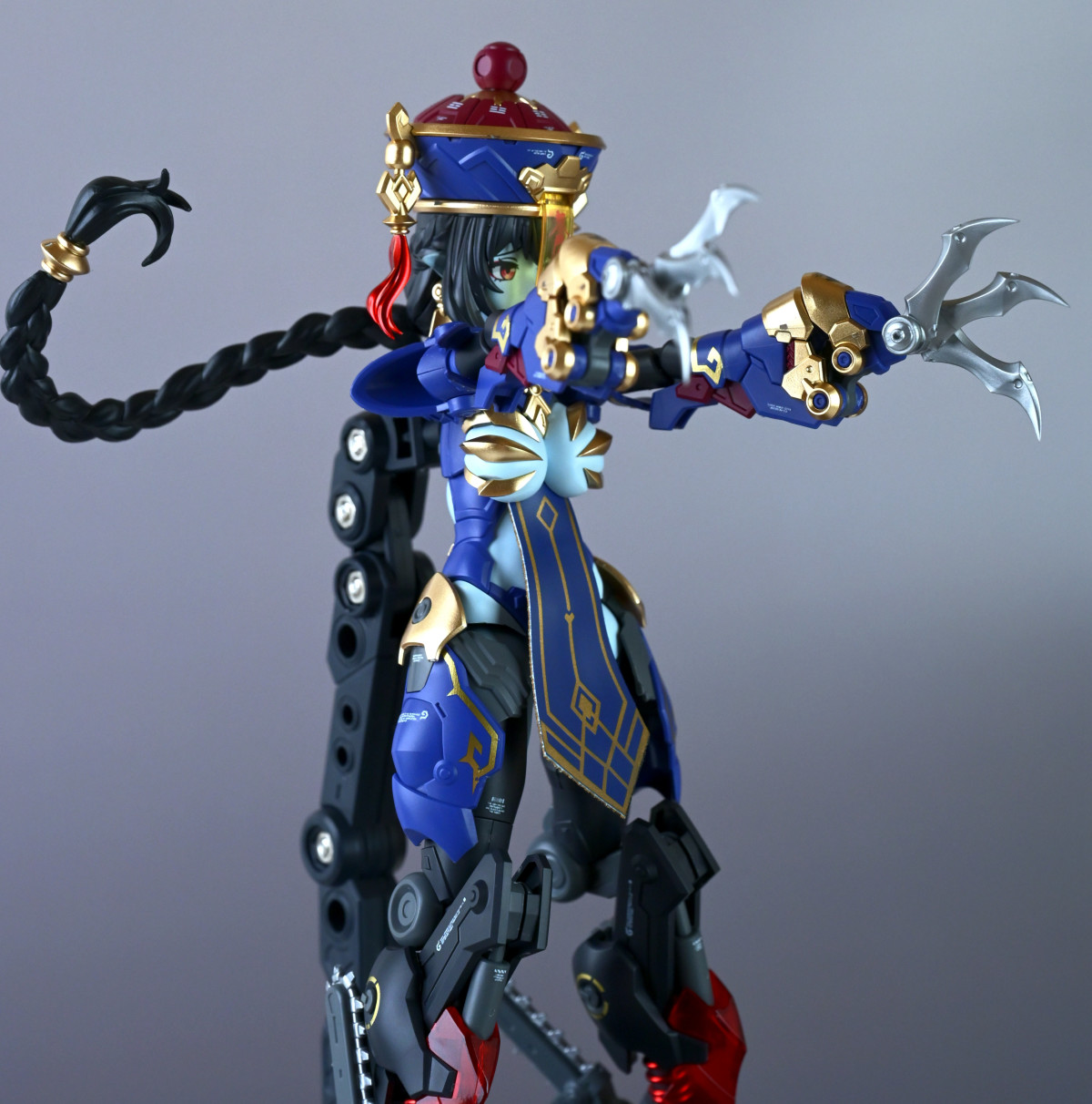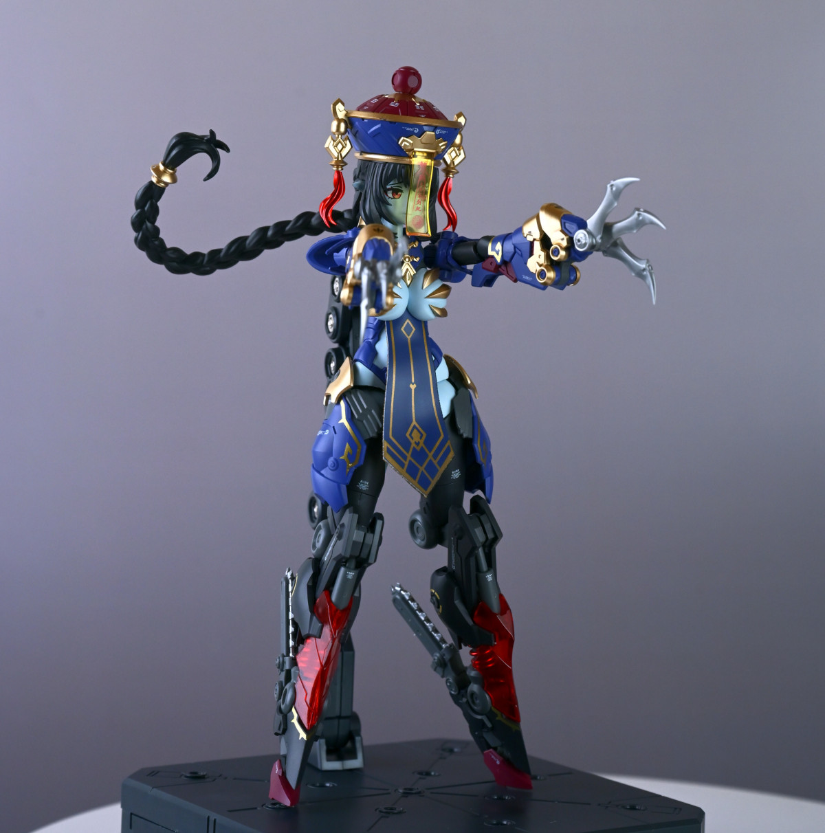 這是一款由和模線出品的殭屍機娘,整個機娘滿滿的中國風,此款機娘是雙素體也就是買一隻可以組兩隻,可以組成機娘型態和武裝型態兩種風格。