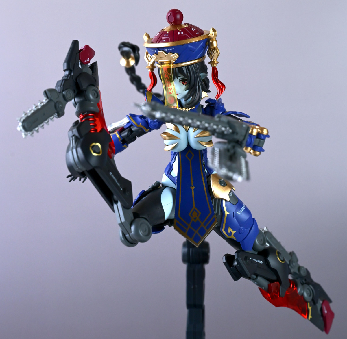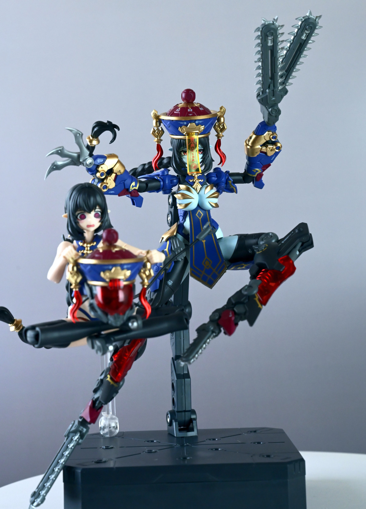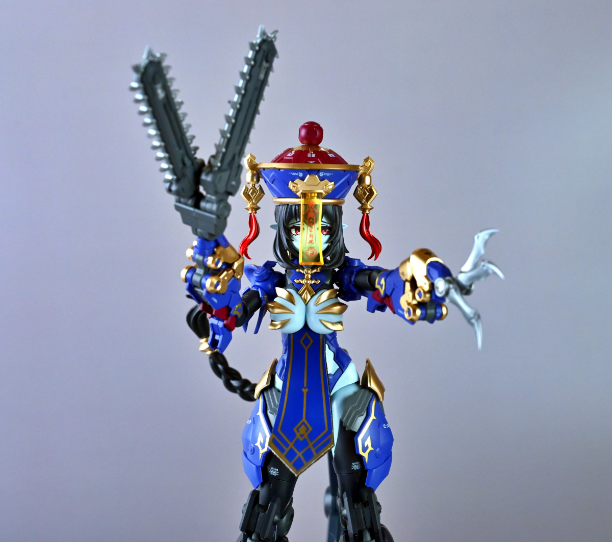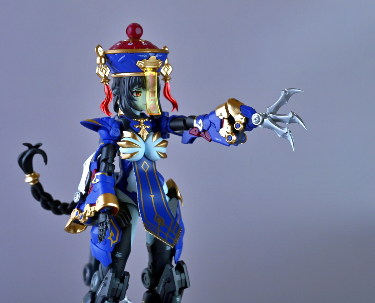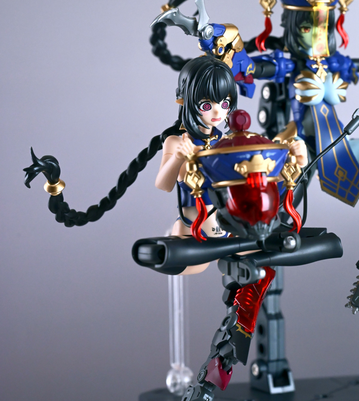 這是一款由和模線出品的殭屍機娘,整個機娘滿滿的中國風,此款機娘是雙素體也就是買一隻可以組兩隻,可以組成機娘型態和武裝型態兩種風格。