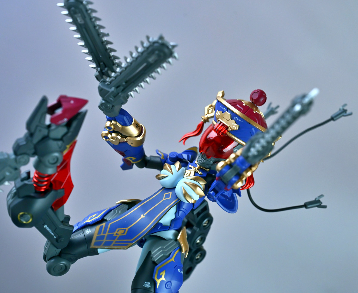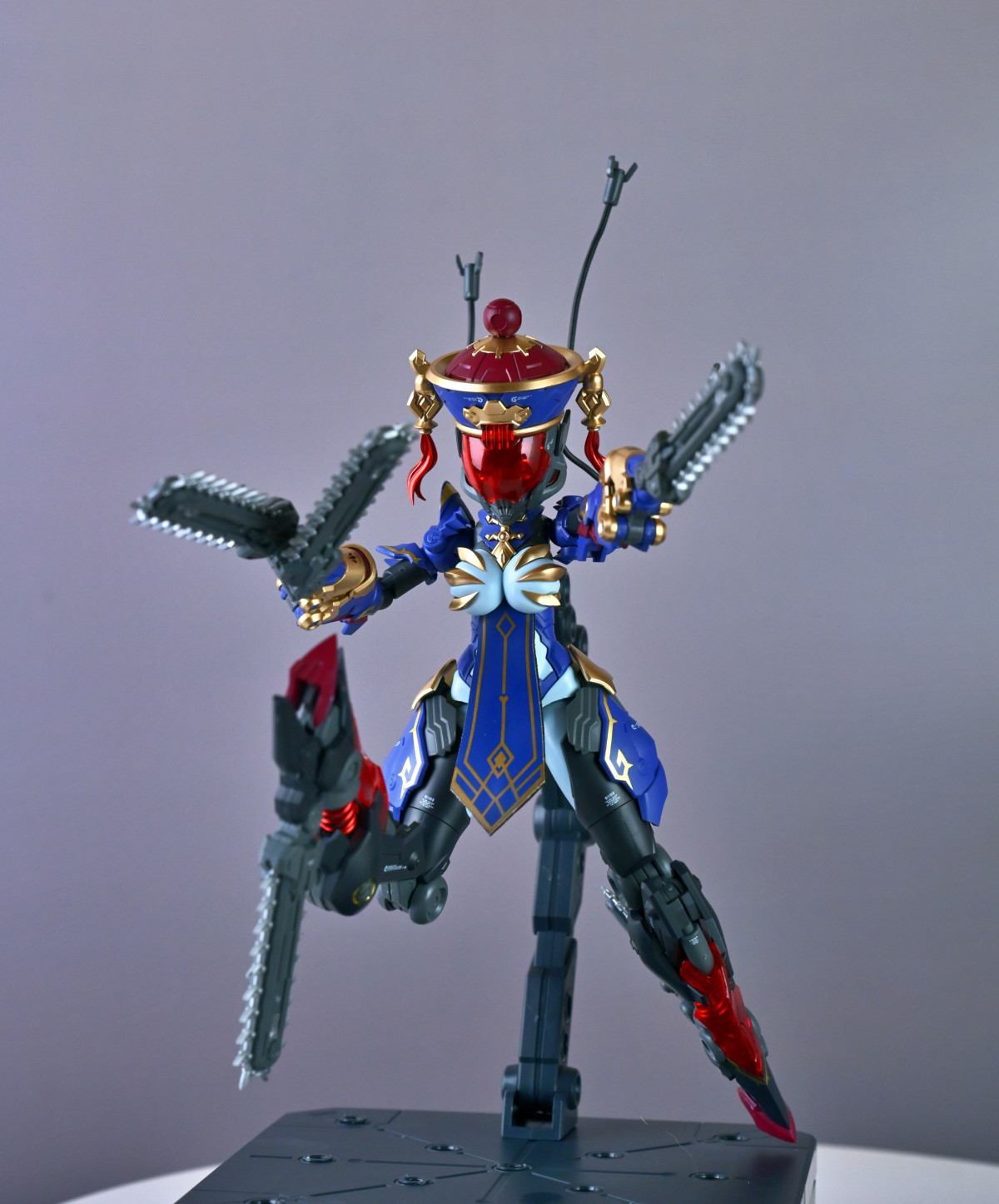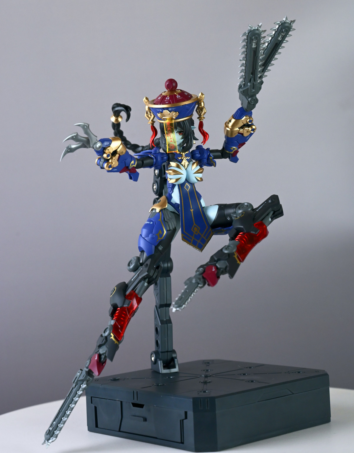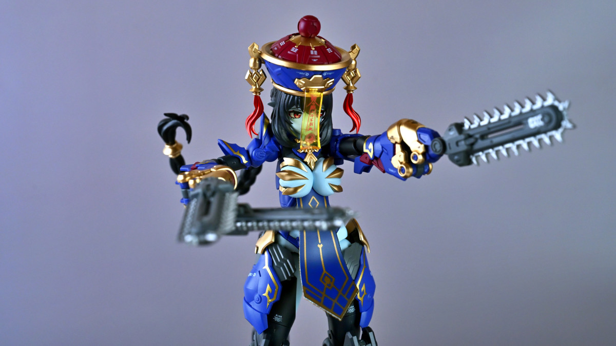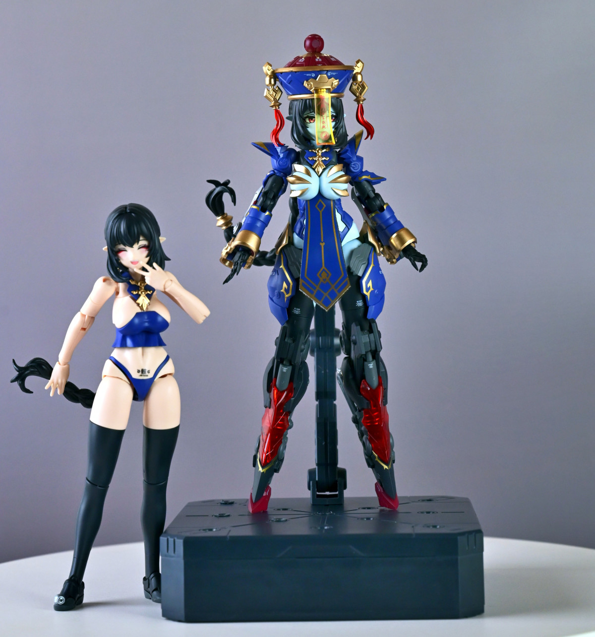 這是一款由和模線出品的殭屍機娘,整個機娘滿滿的中國風,此款機娘是雙素體也就是買一隻可以組兩隻,可以組成機娘型態和武裝型態兩種風格。