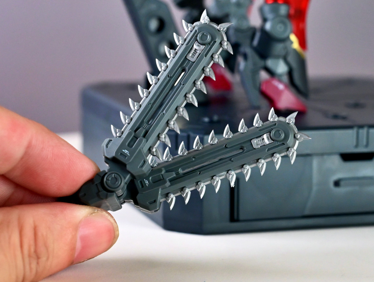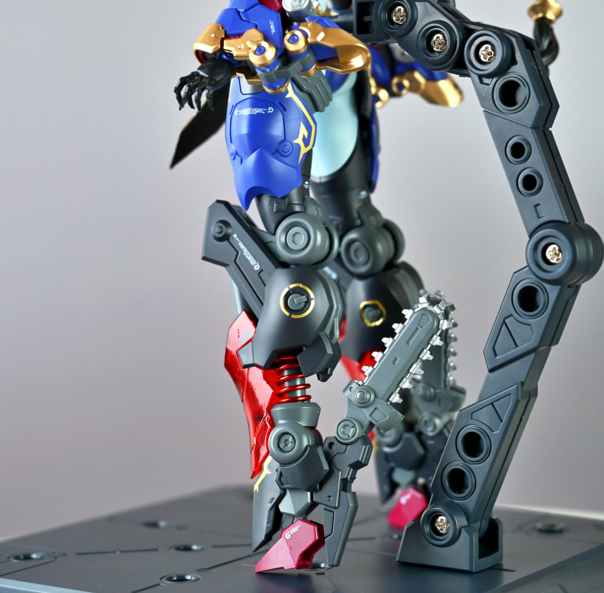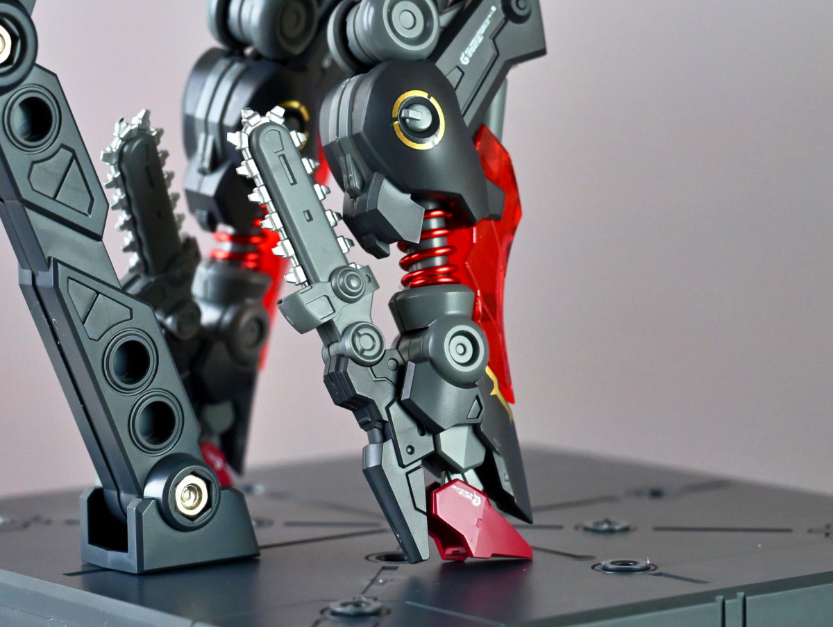 ▼這個就真的恐怖了! 腿部使用特殊的三節式關節可以做出很多逆天的動作,腿部的電鋸可以拔下轉換方向使電鋸在前方