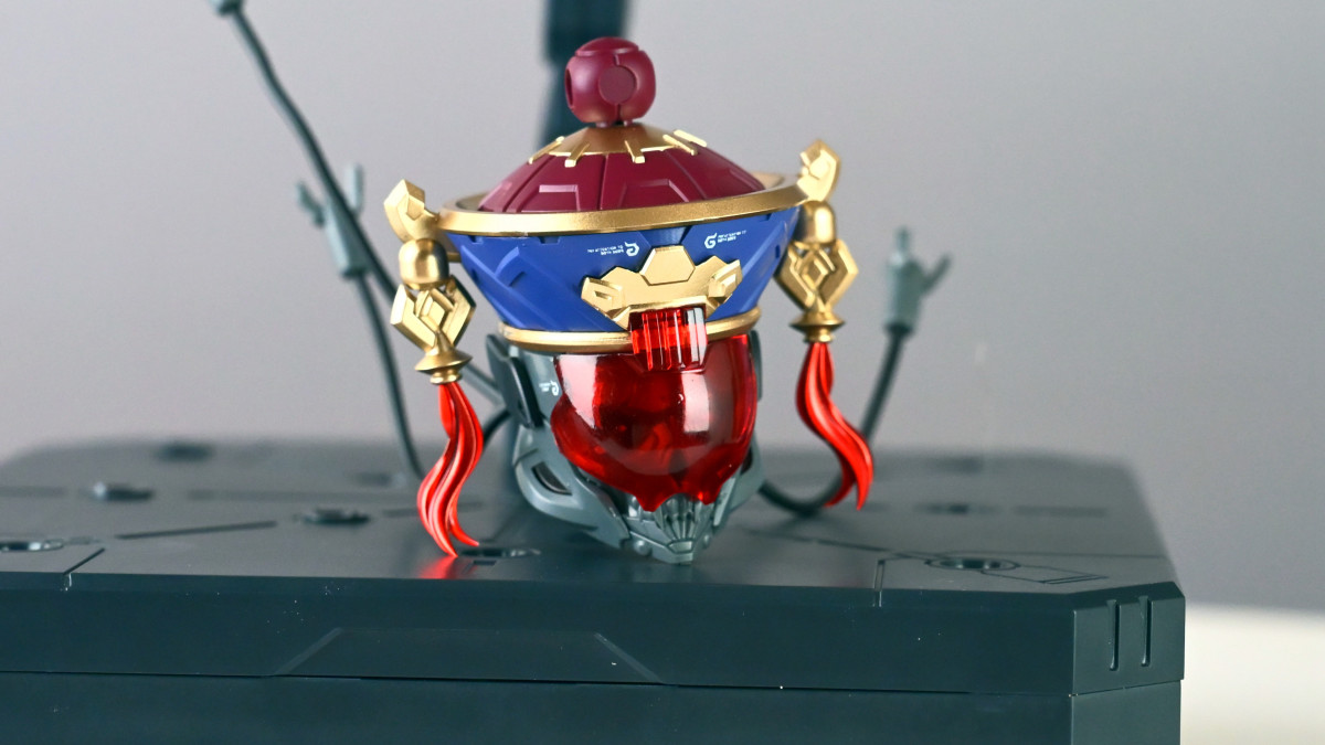 ▼這個要特別說明,頭部的左右兩側吊飾是屬於預塗裝板件然後該零件非常的脆弱,強烈建議安裝前可以選擇擴孔或是打磨,我是選擇塗裝凡士林增加潤滑,由於零件安裝完畢後太過於緊實如果沒有做前置處理些微轉動可以會因為緊實的關係導致零件斷裂在裡面而無法補救。