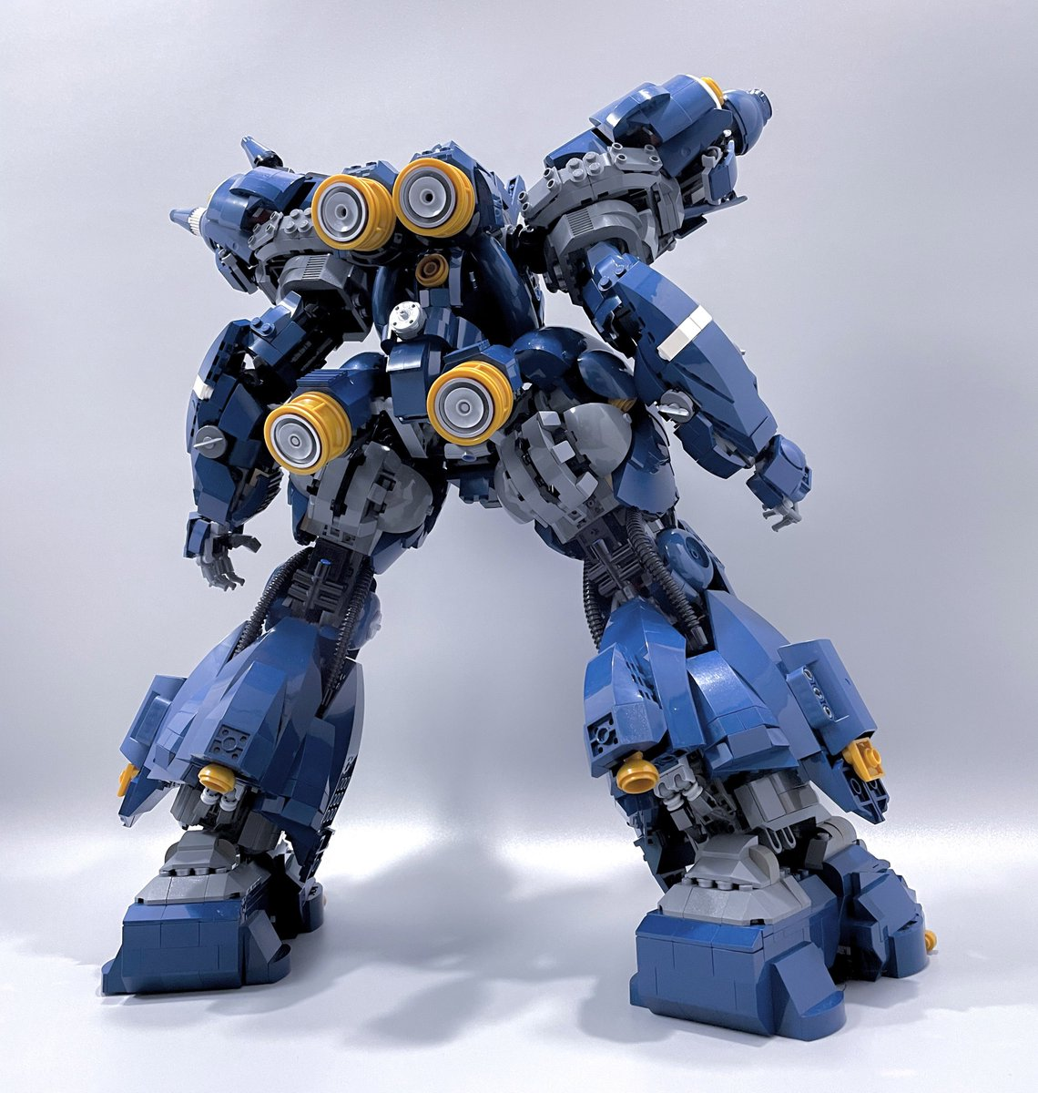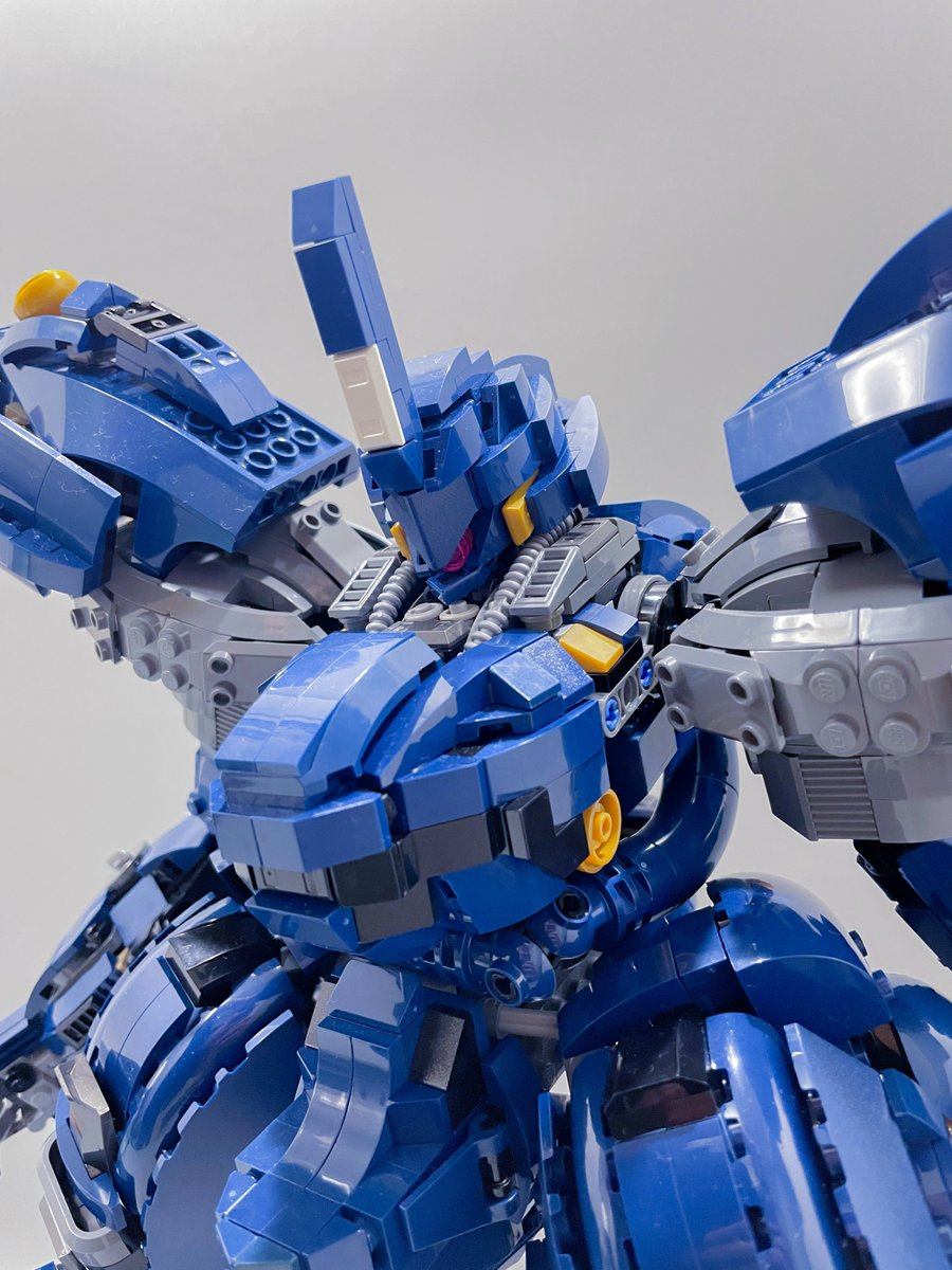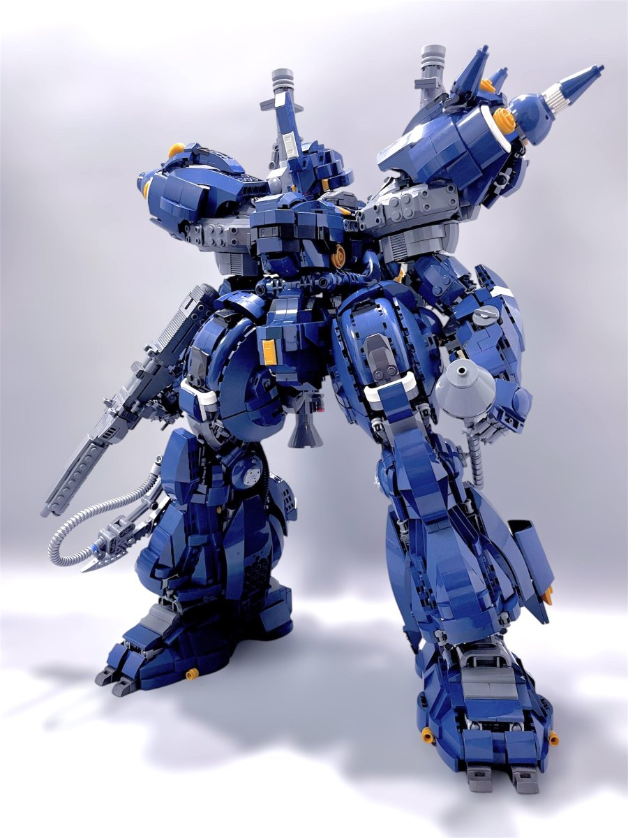 這其實是這次是推主 unil 首度挑戰 45 公分等級的作品。用了很多大型的曲線零件,打造出流線型的外觀設計,同時讓下半身更有份量,整體感覺讓肯普法更有巨大魄力。