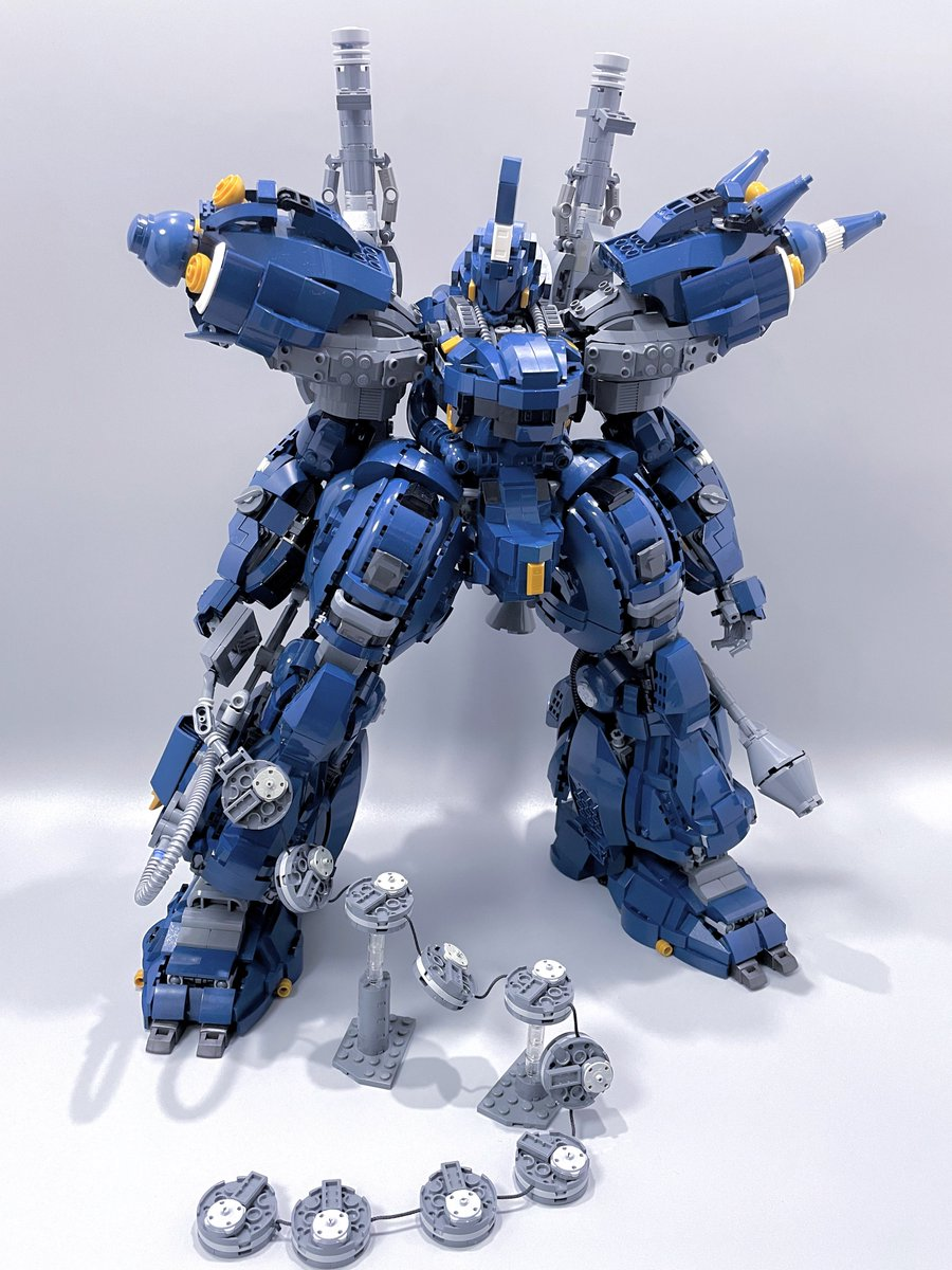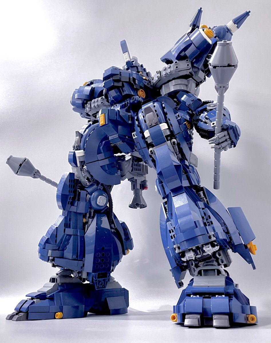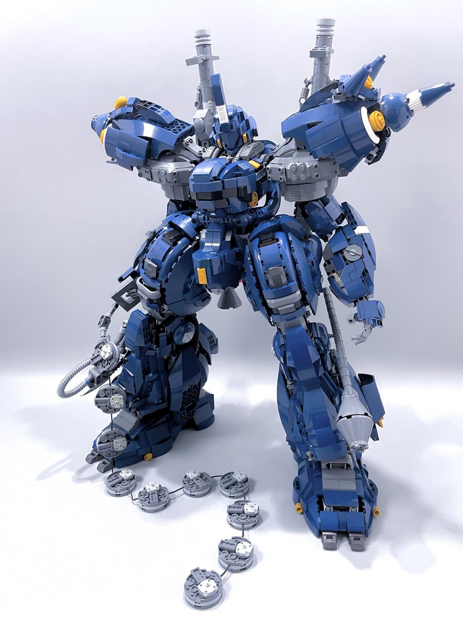 這其實是這次是推主 unil 首度挑戰 45 公分等級的作品。用了很多大型的曲線零件,打造出流線型的外觀設計,同時讓下半身更有份量,整體感覺讓肯普法更有巨大魄力。