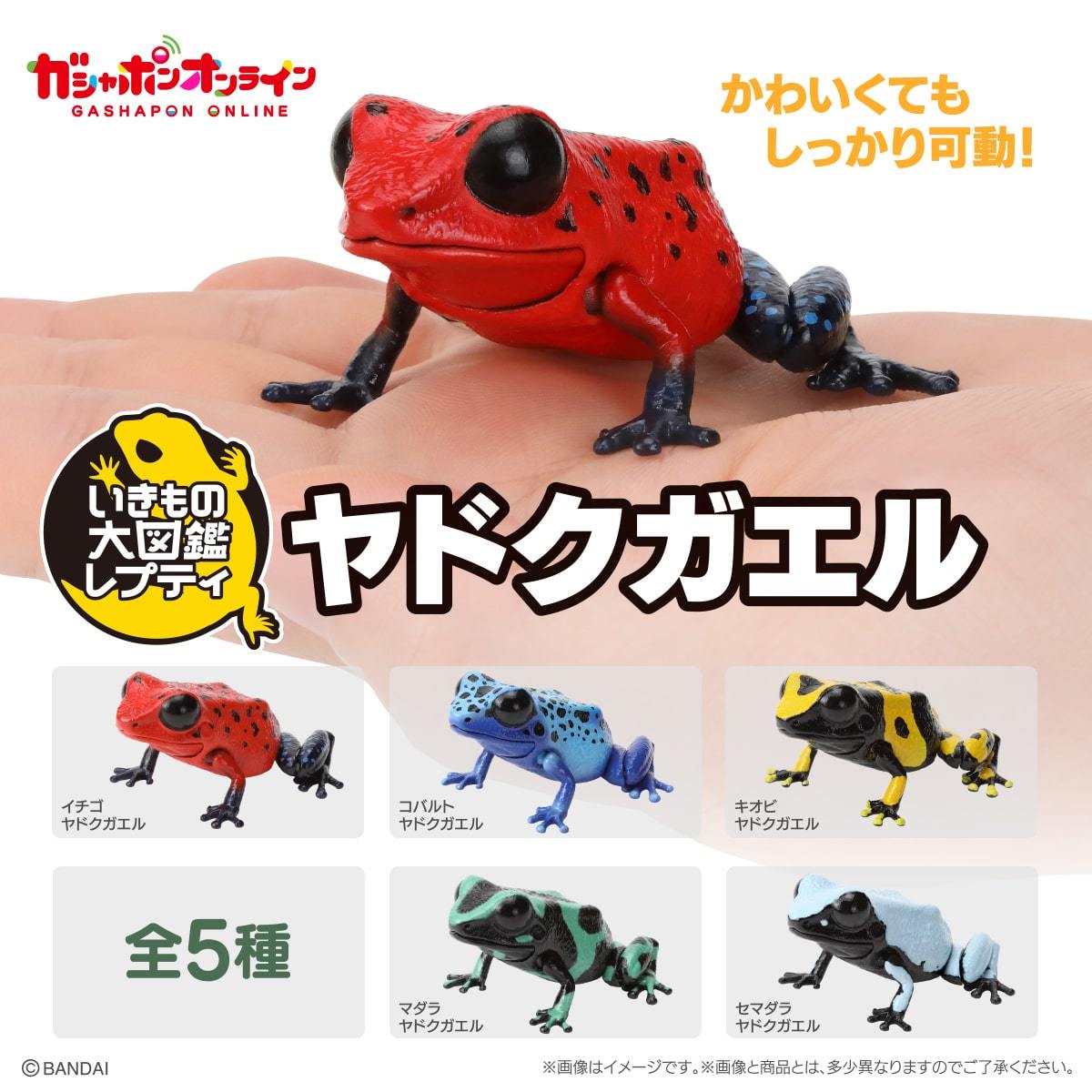 由日本萬代玩具公司轉蛋事業部 GASHAPON 發行、主打還原自然界生物擬真細節的「生物大圖鑑」(いきもの大図鑑)商品系列現正於 GASHAPON ONLINE 發售最新的「生物大圖鑑Repti 箭毒蛙」(いきもの大図鑑レプティ ヤドクガエル)轉蛋!預計 2025 年 11 月開始發貨,建議售價為每轉 500 日幣,一共有五種款式可以收集。
