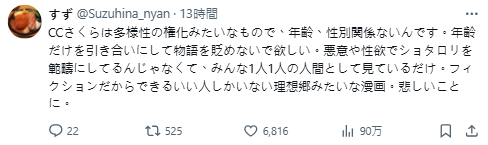 甚至也有人指出,在《庫洛魔法使》連載的時空背景,當時女性 16 歲結婚也是合法的 ( 修法實施 2022 年前 ),很多老作品拿到現代價值觀下來看都會有不合的地方。