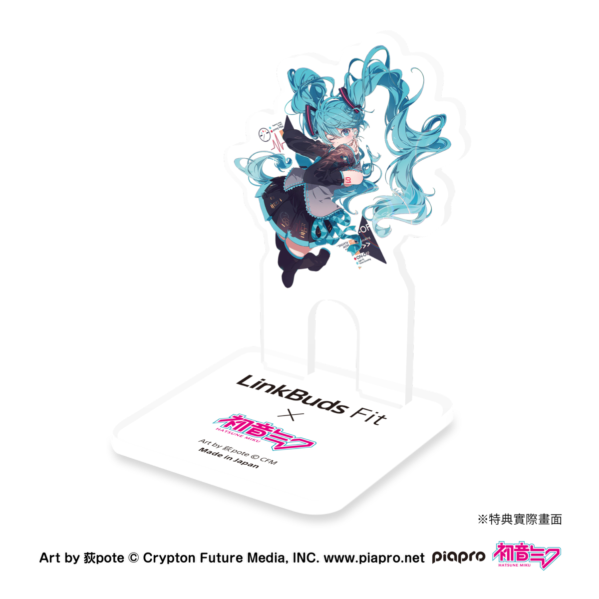 由日本插畫家 荻pote全新設計的初音未來壓克力架,底座特別規劃可放置 LinkBuds Fit 耳機充電盒。